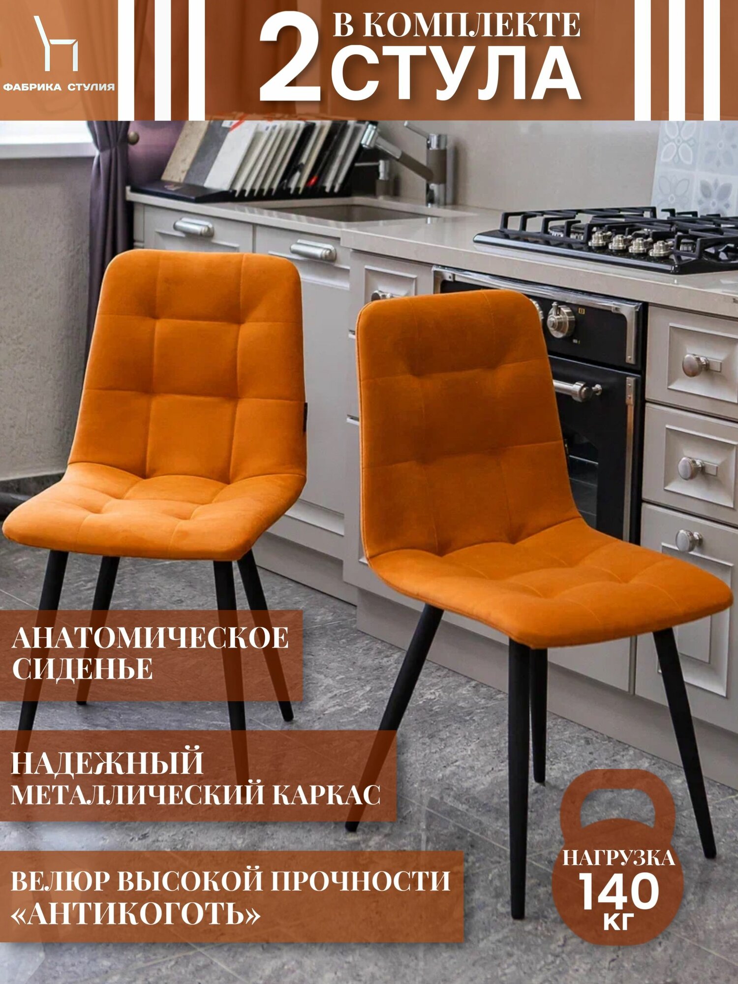 Стул мягкий для кухни из велюра, кухонный стул, цвет горчица желтый с черными ножками, профиль/2 шт