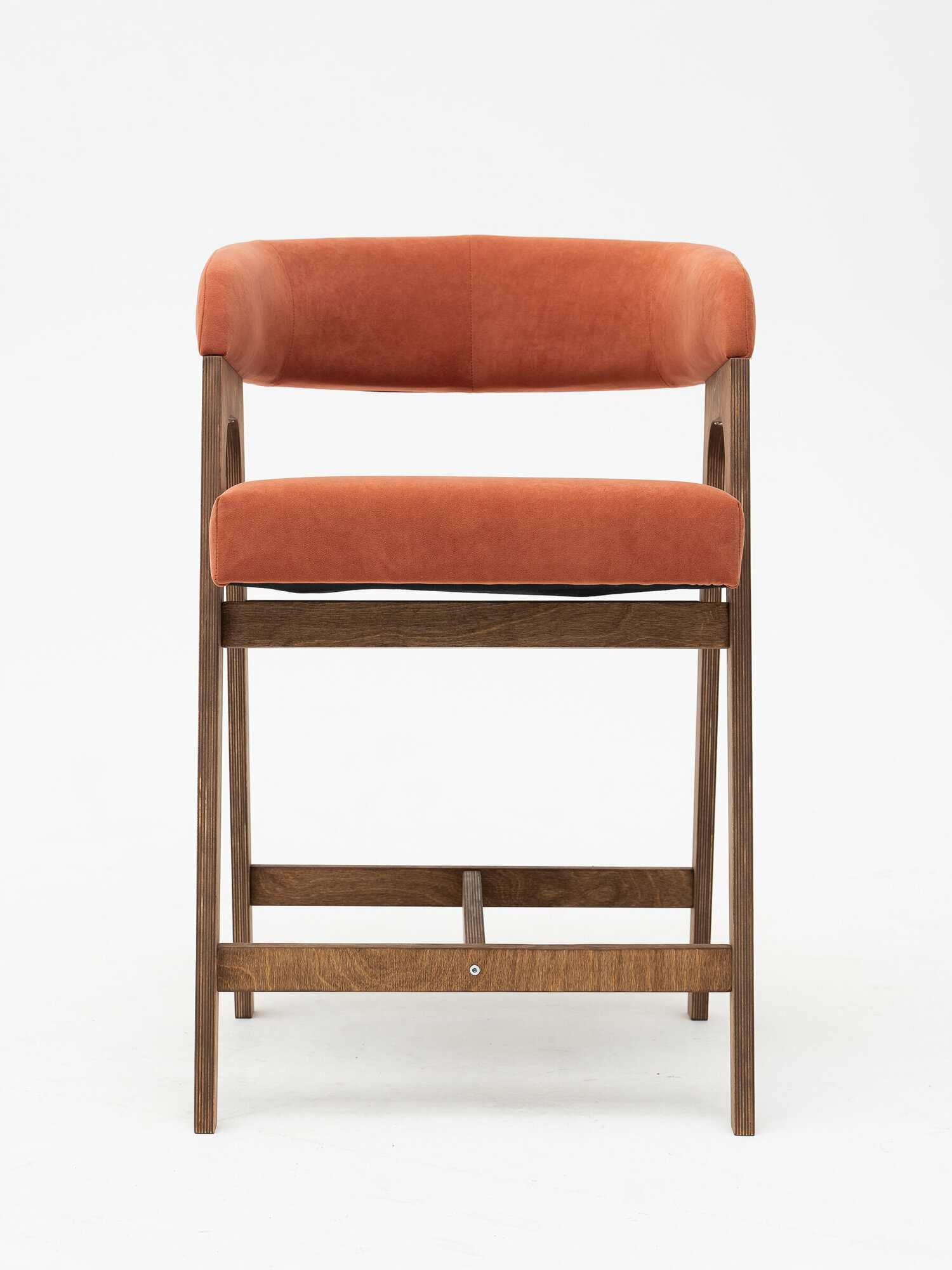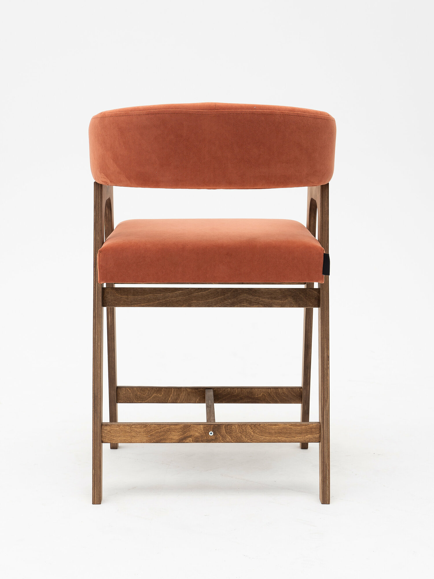 Полубарный стул ZASIDELIS кайф для кухни мягкий со спинкой оранжевый/коричневый, велюр, 56х62х90 см, до 130 кг