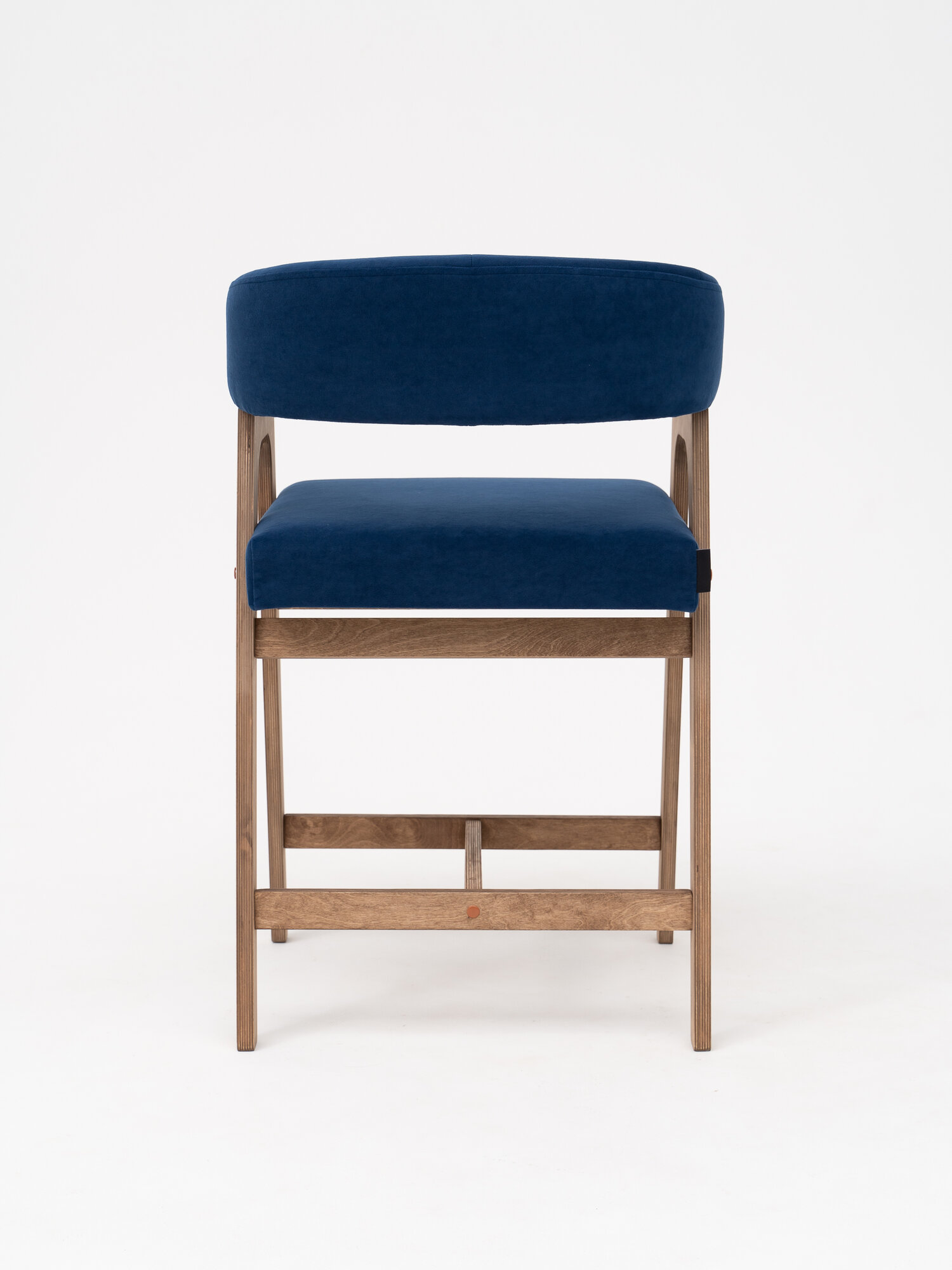 Купить Полубарный стул КAIF со спинкой, синий,коричневое масло