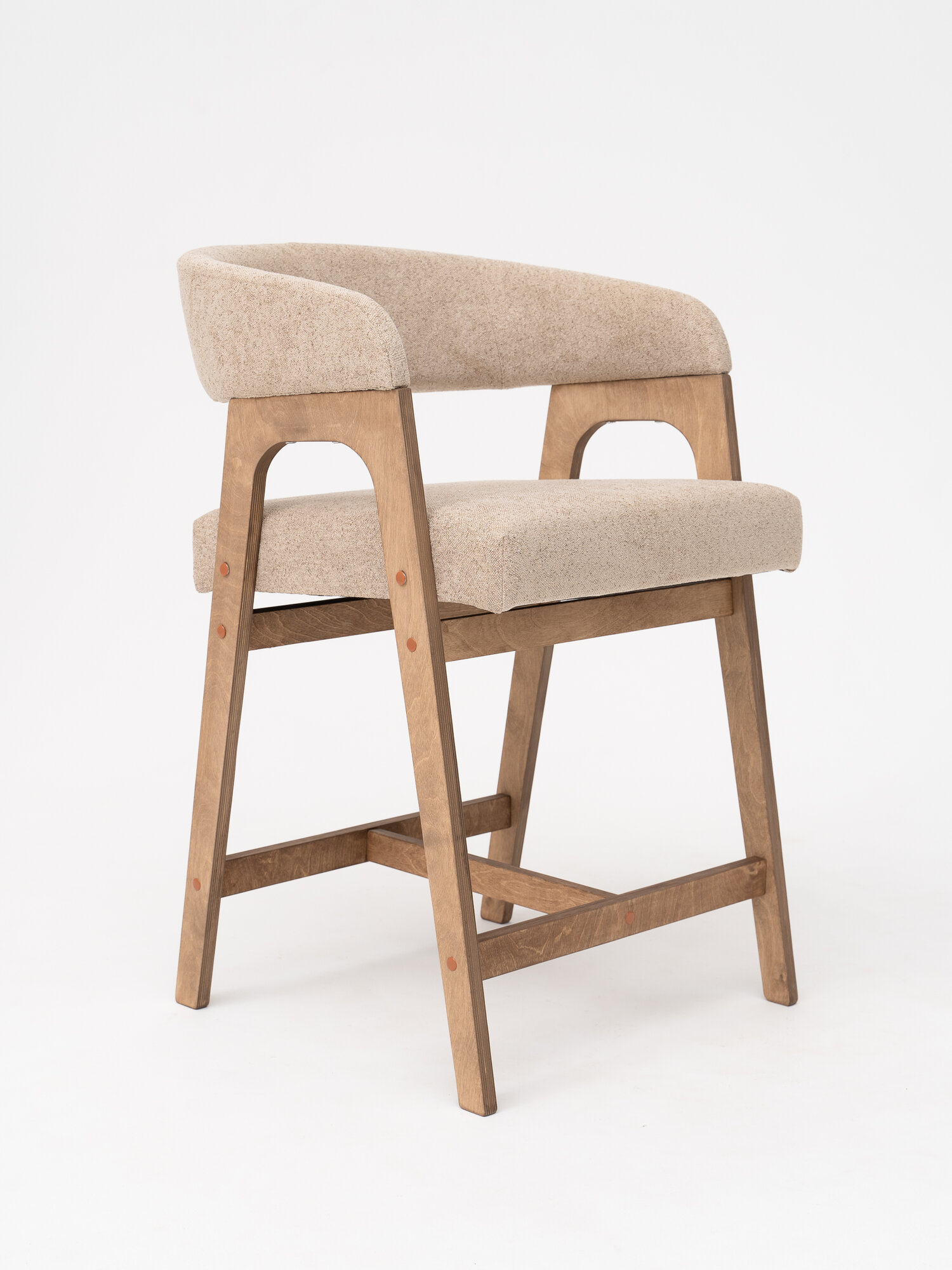 Полубарный стул КAIF со спинкой, темно- бежевый, ноги коричневое масло