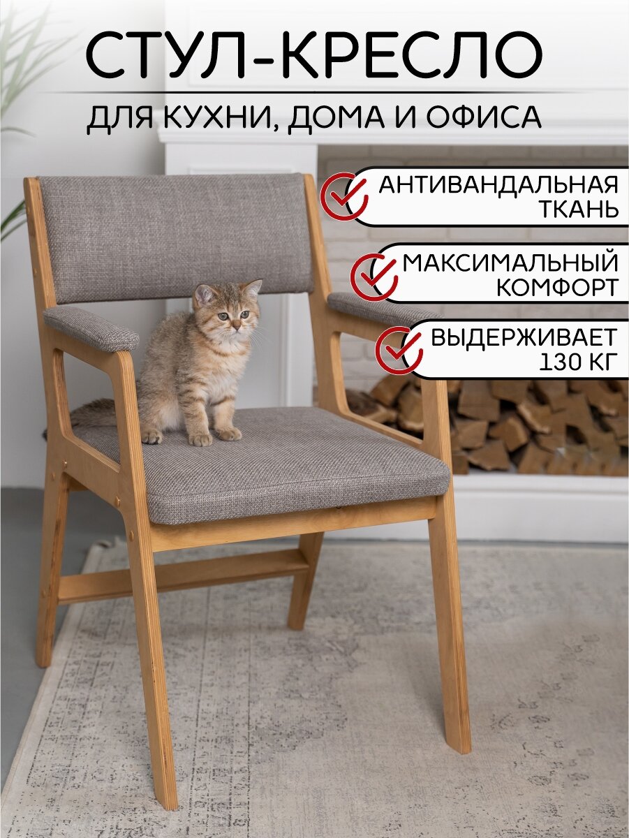 Cтул кресло ZASIDELIS ИЗИ для кухни дома и офиса светло серый/натуральный, из велюра, 53х62х84, до 150 кг