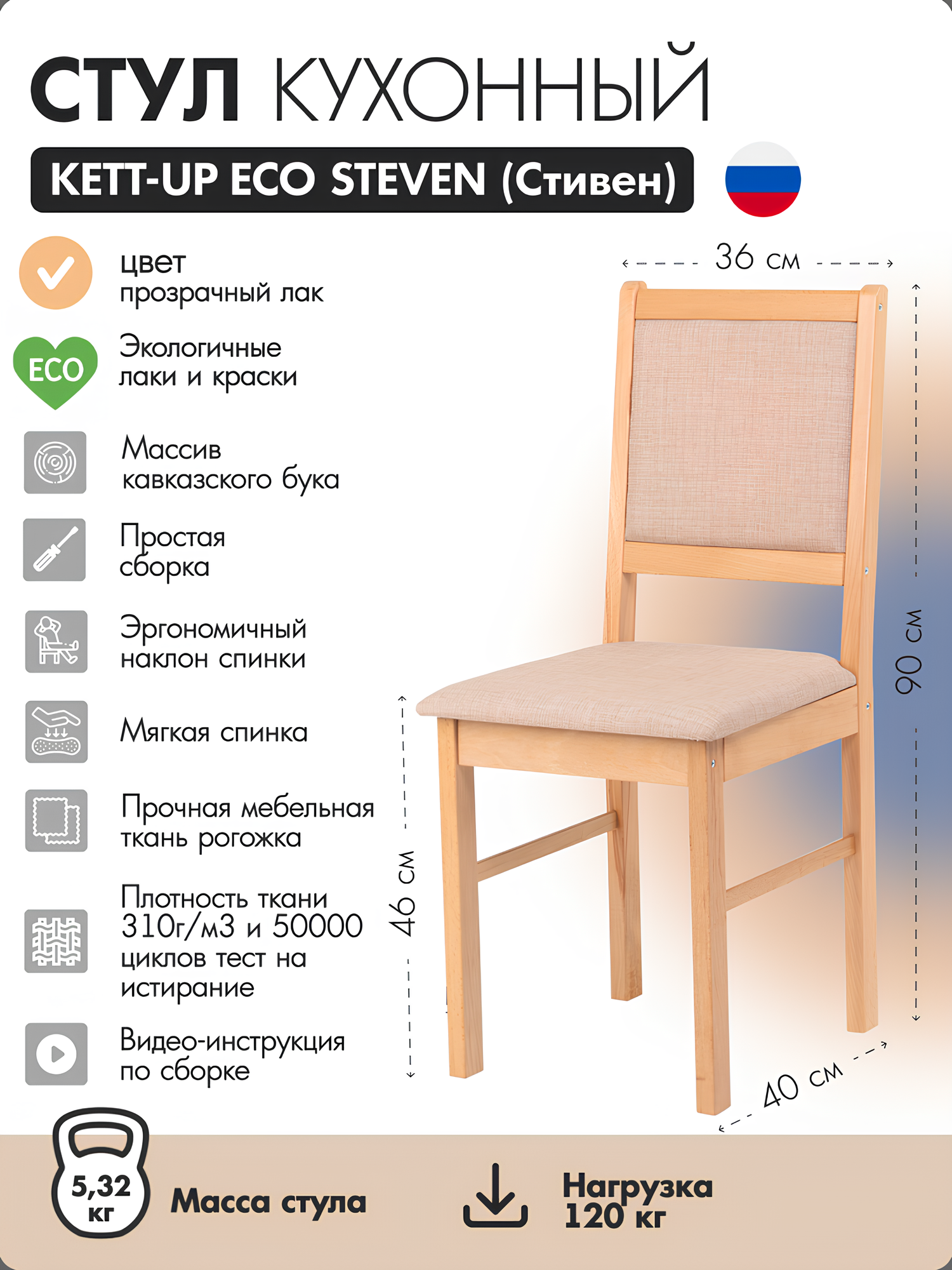 Стул кухонный KETT-UP ECO MARCUS (маркус), KU118.1, прозрачный лак, деревянный