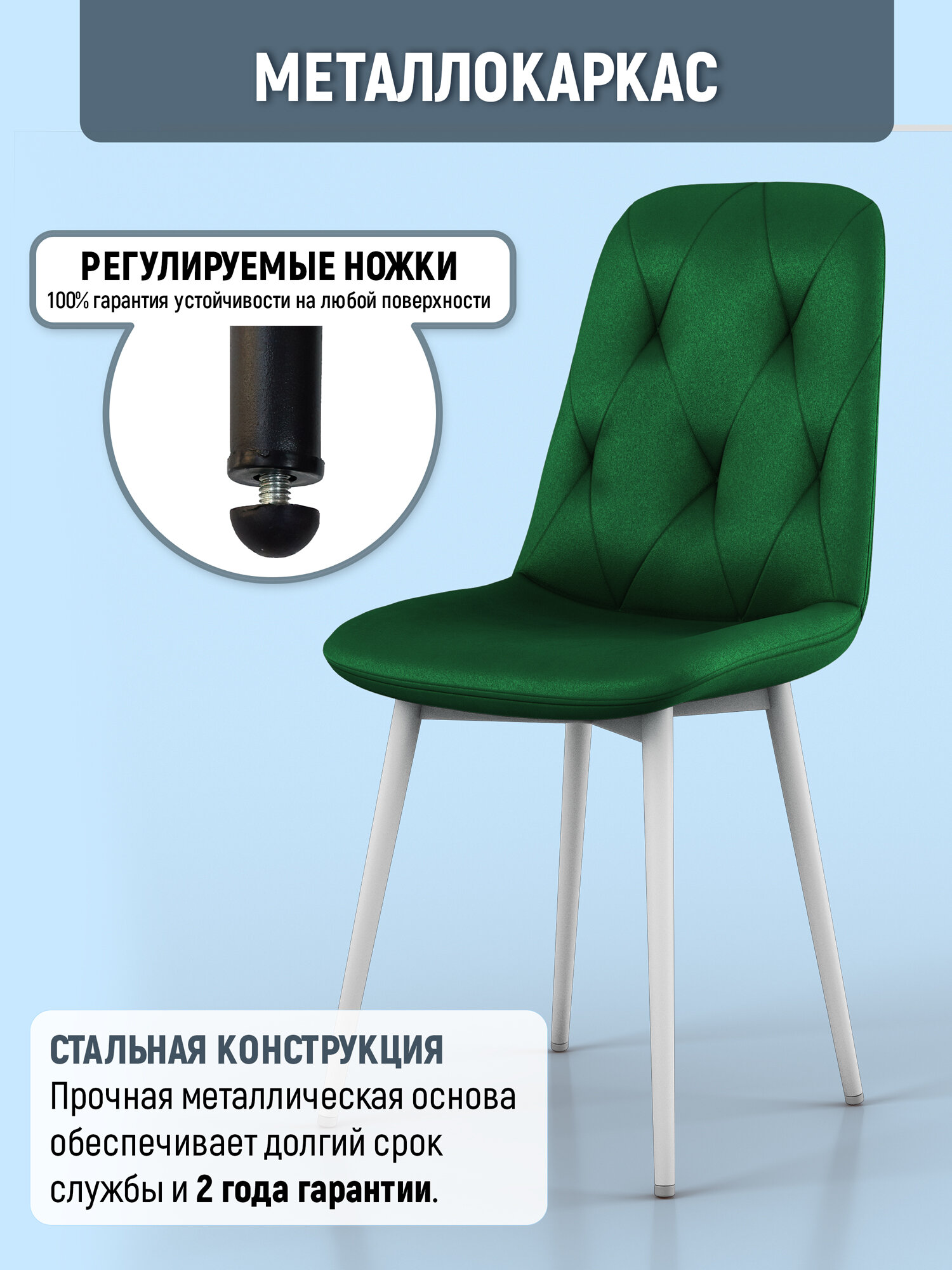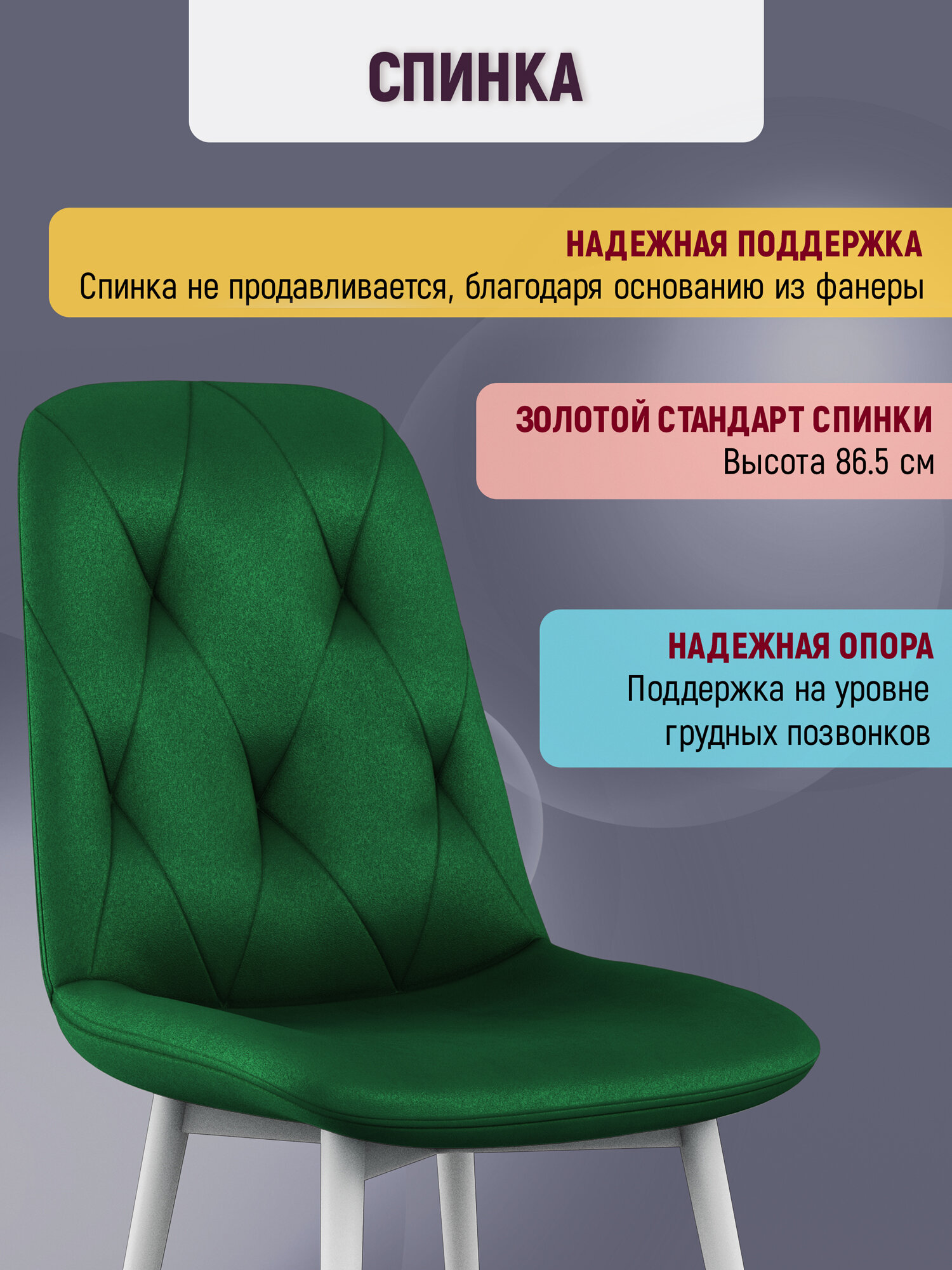 Купить Комплект (4 шт) мягких стульев для кухни, кабинета DC-2103 велюр, зеленый, на белом каркасе
