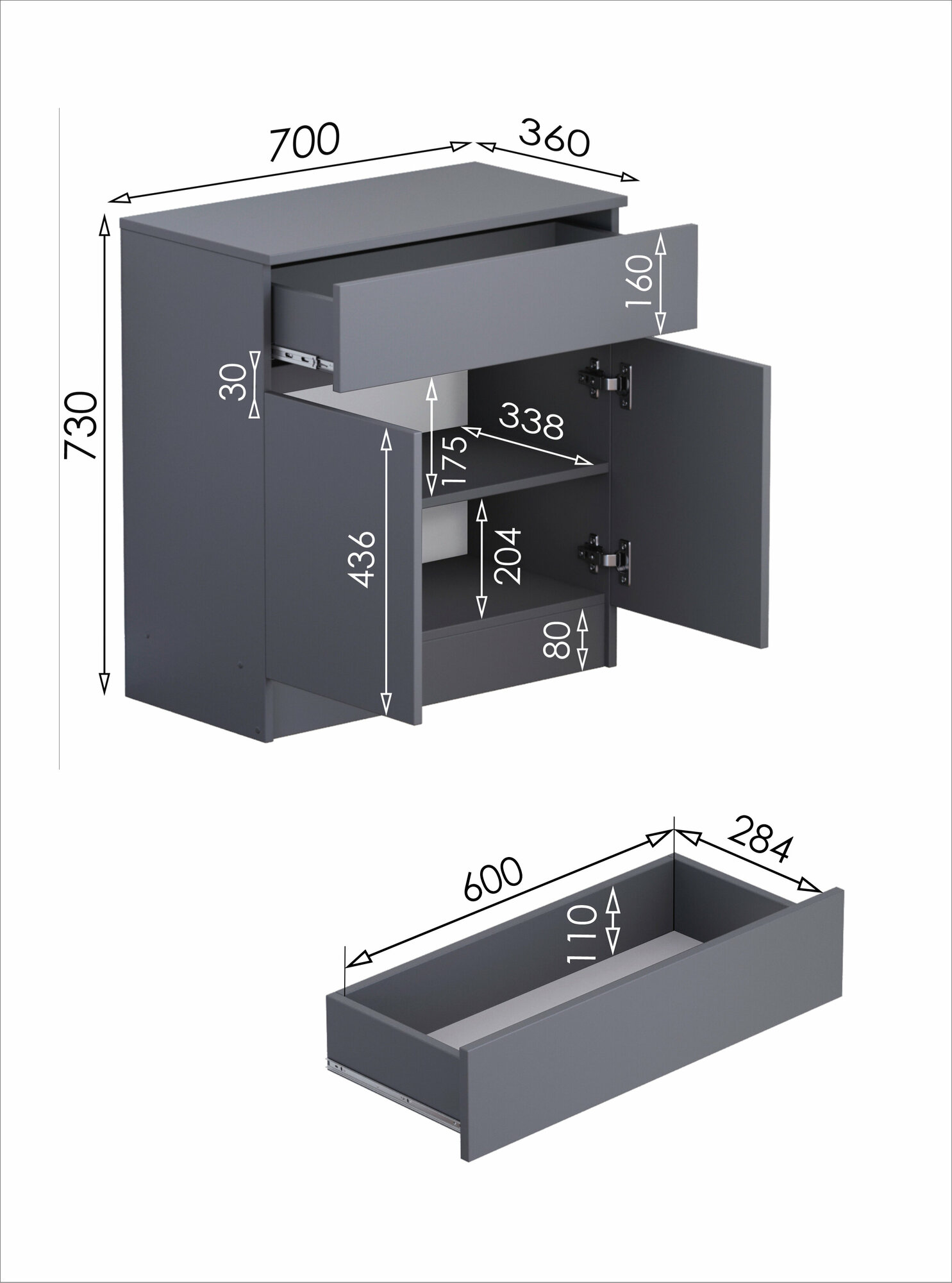 | Комплектация | 2 дверцы, 1 ящик |