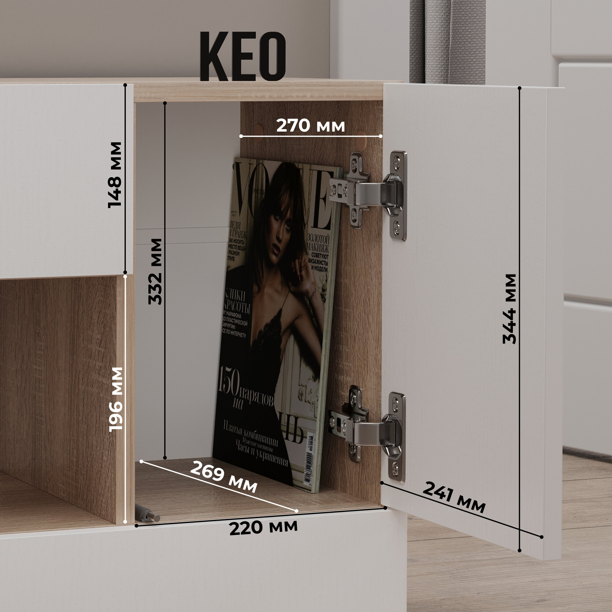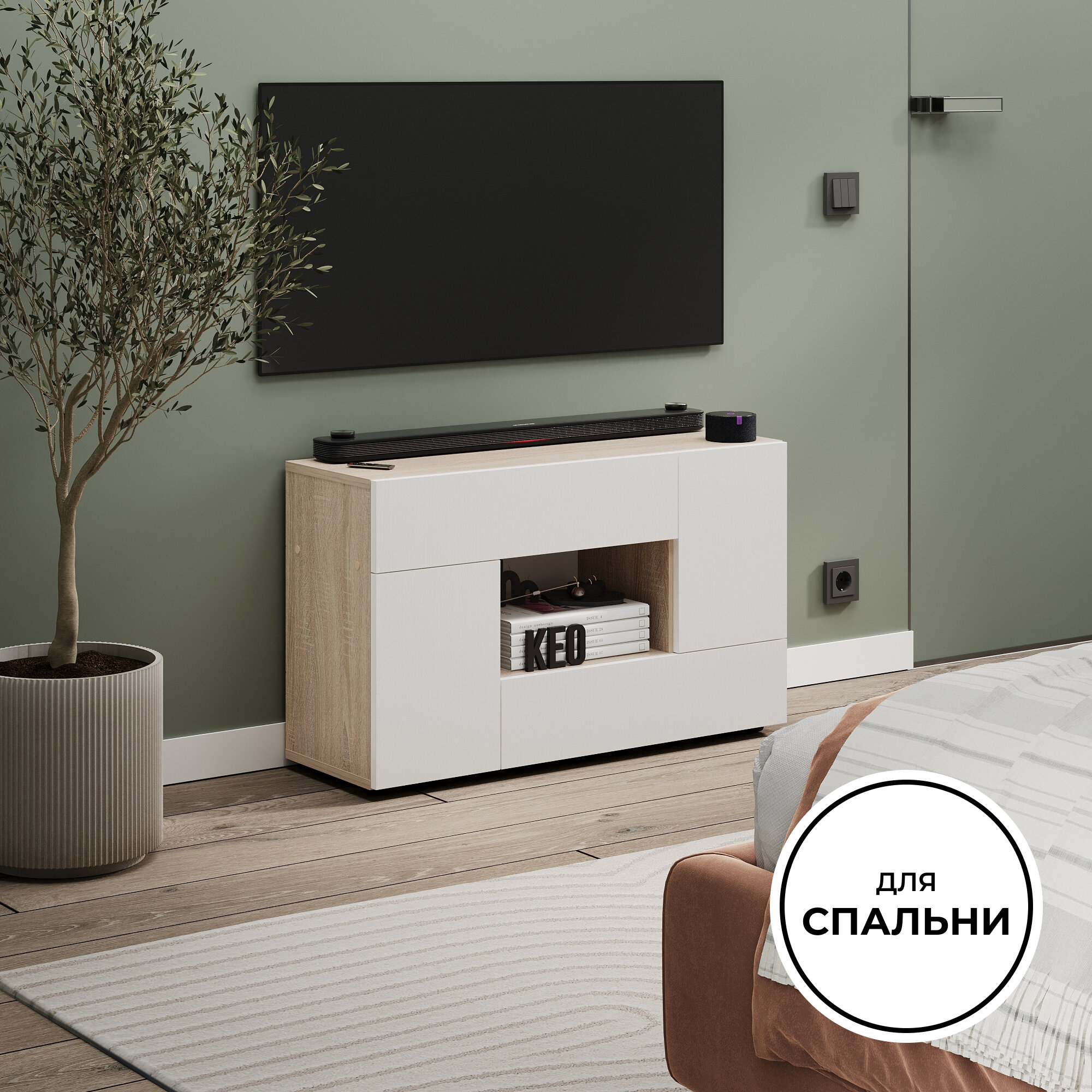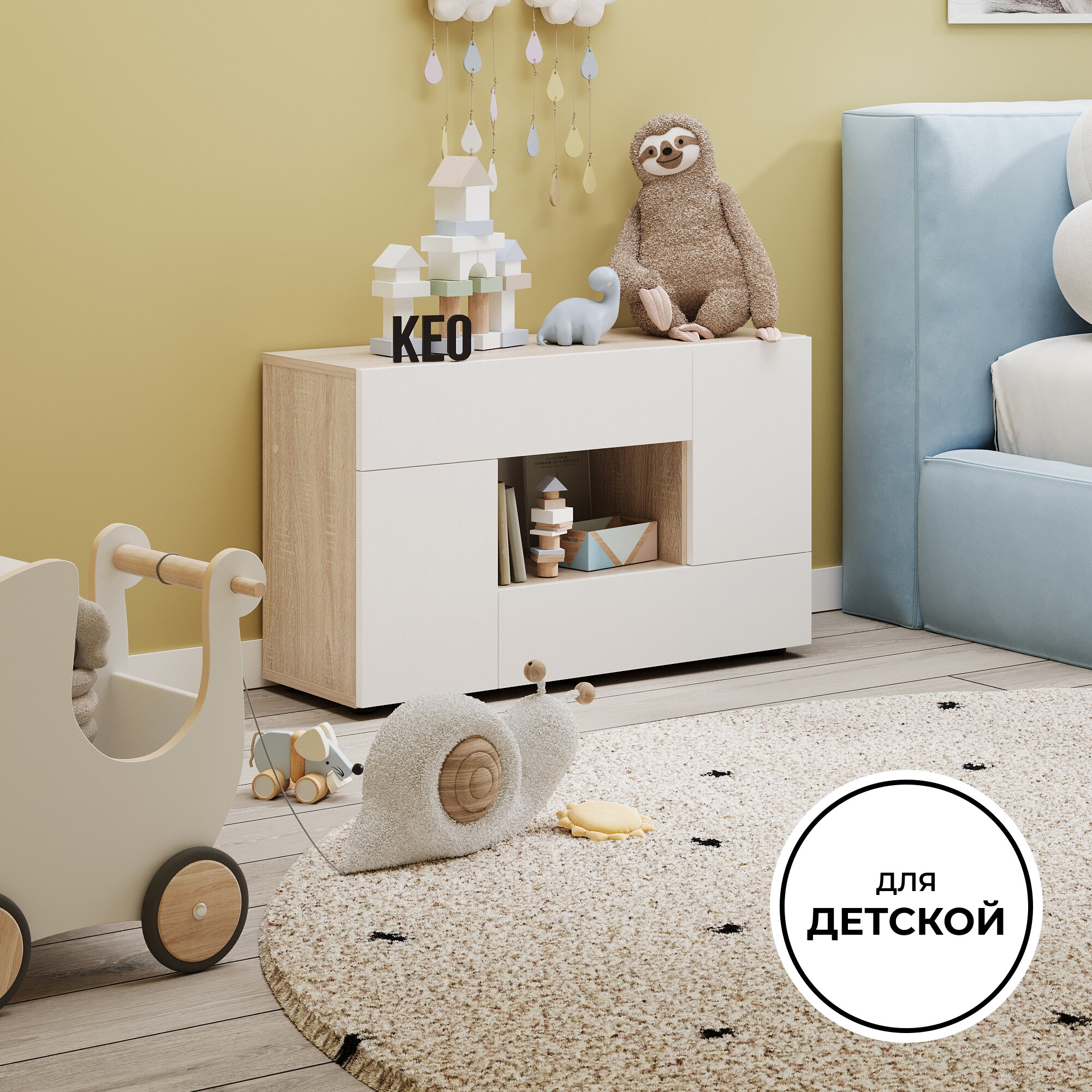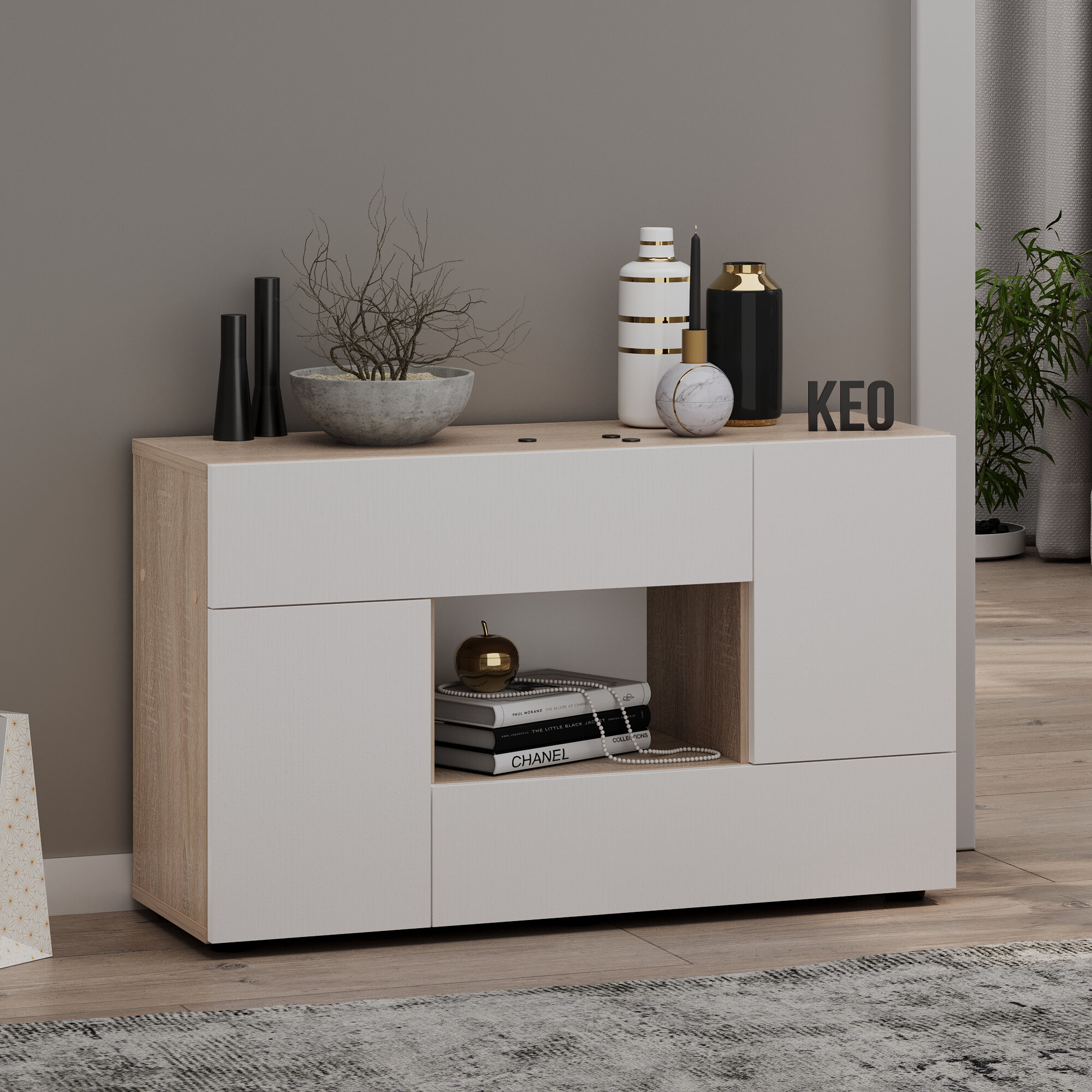 Комод универсальный Кео КМД-205 белый и сонома, 92х90х26 см для спальни, гостиной, детской