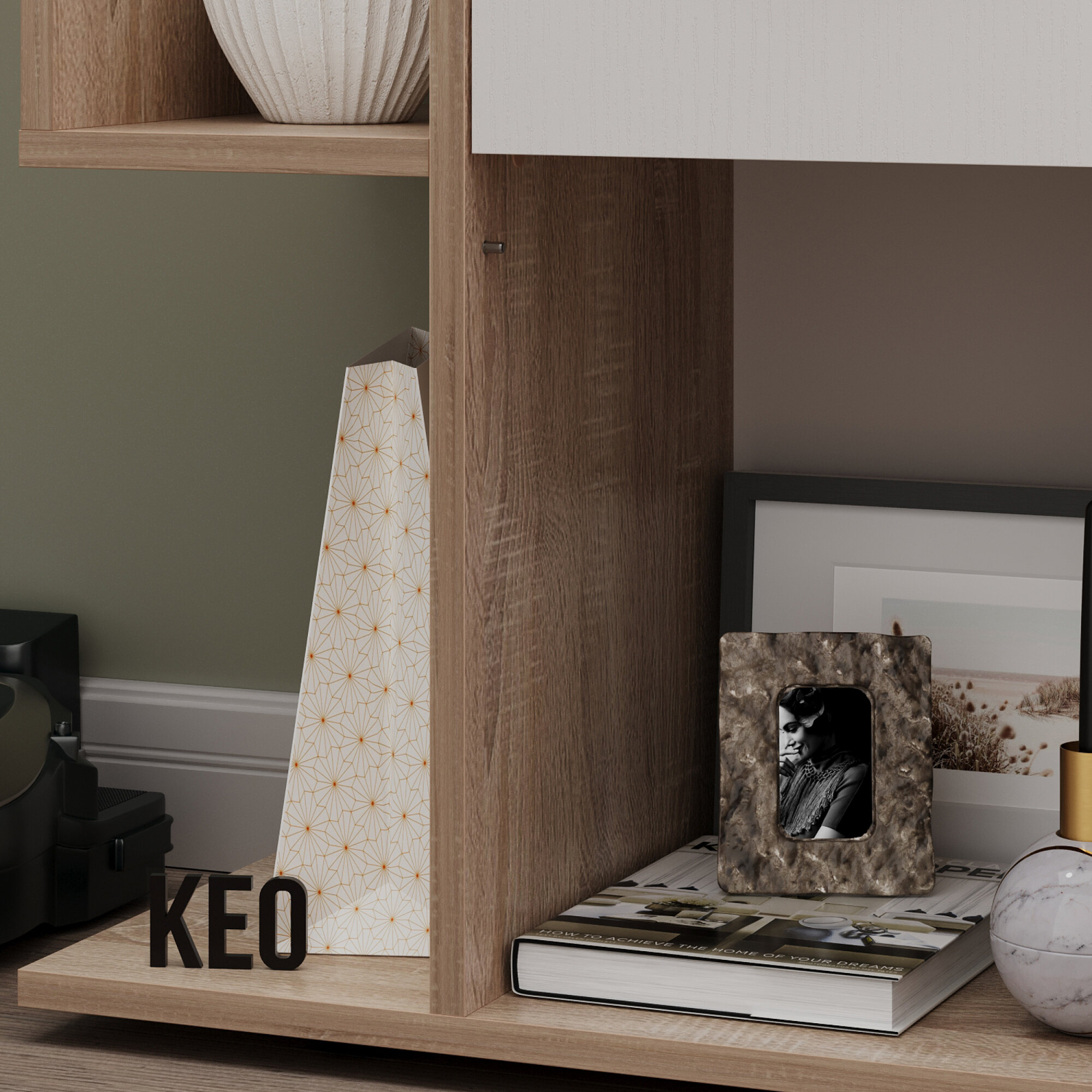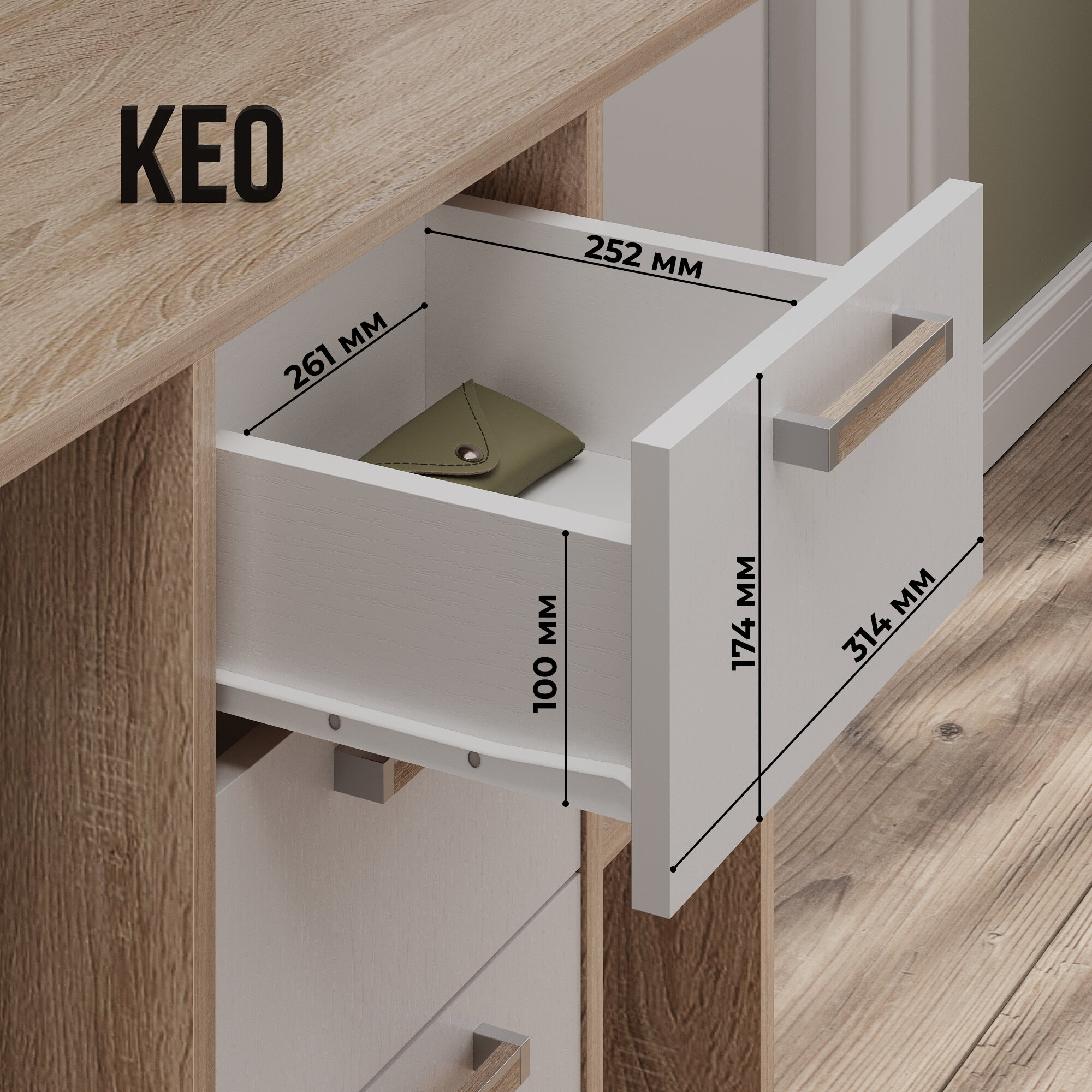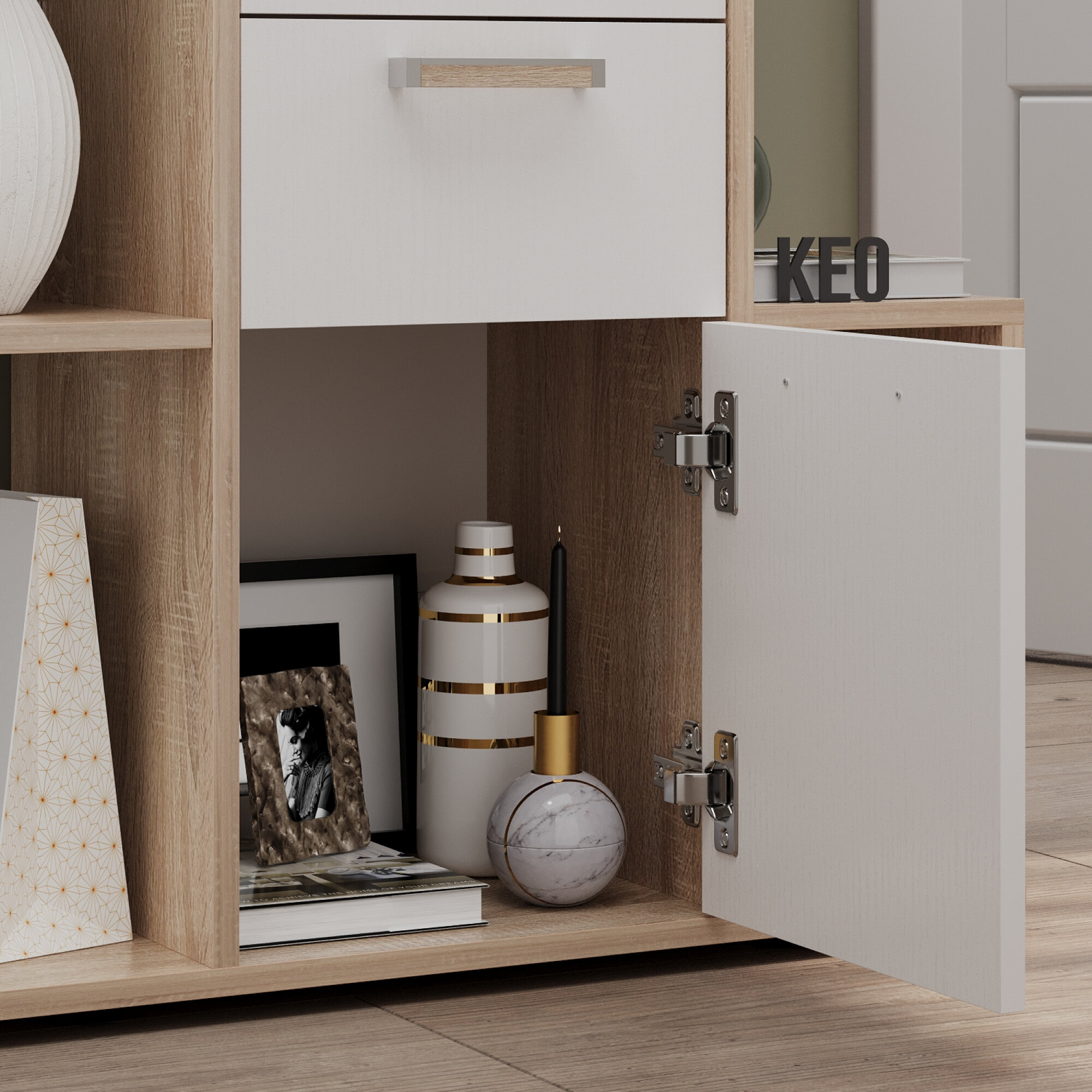 Комод универсальный Кео КМД-205 белый и сонома, 92х90х26 см для спальни, гостиной, детской