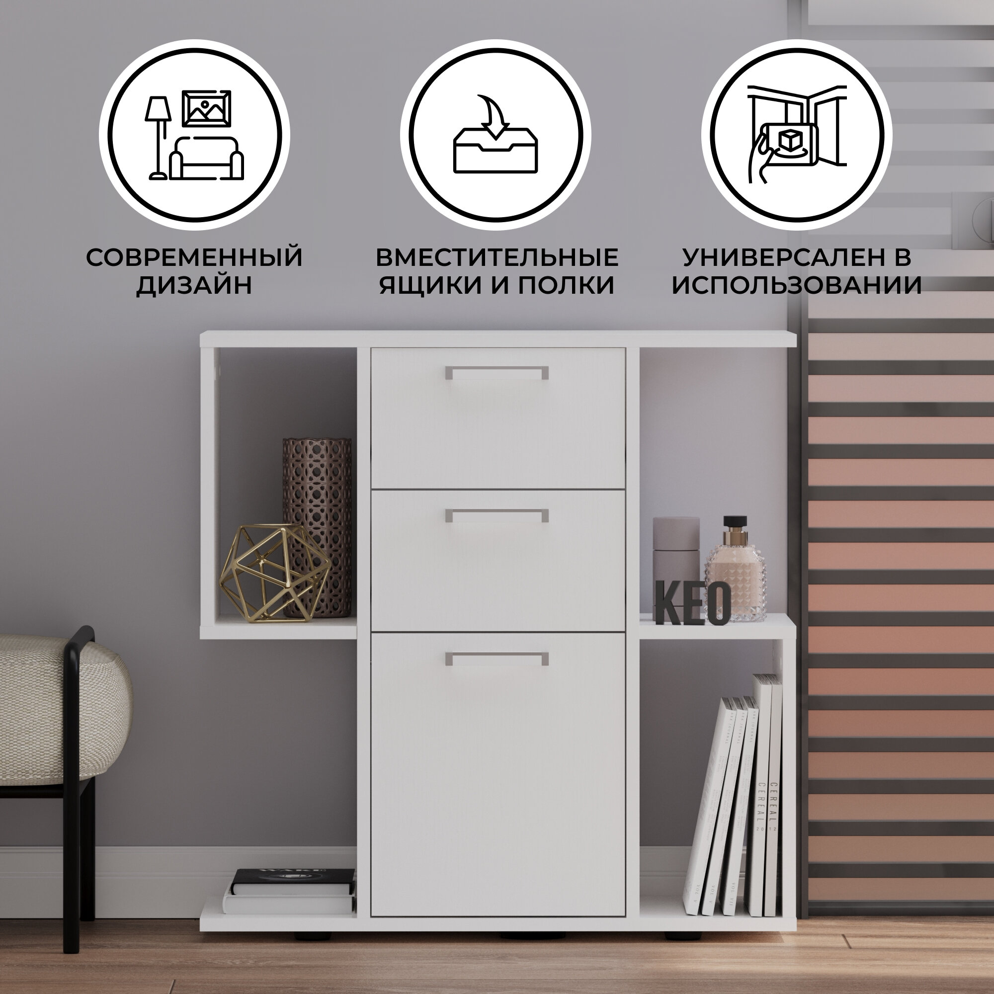 Комод универсальный Кео КМД-205 белый и сонома, 92х90х26 см для спальни, гостиной, детской