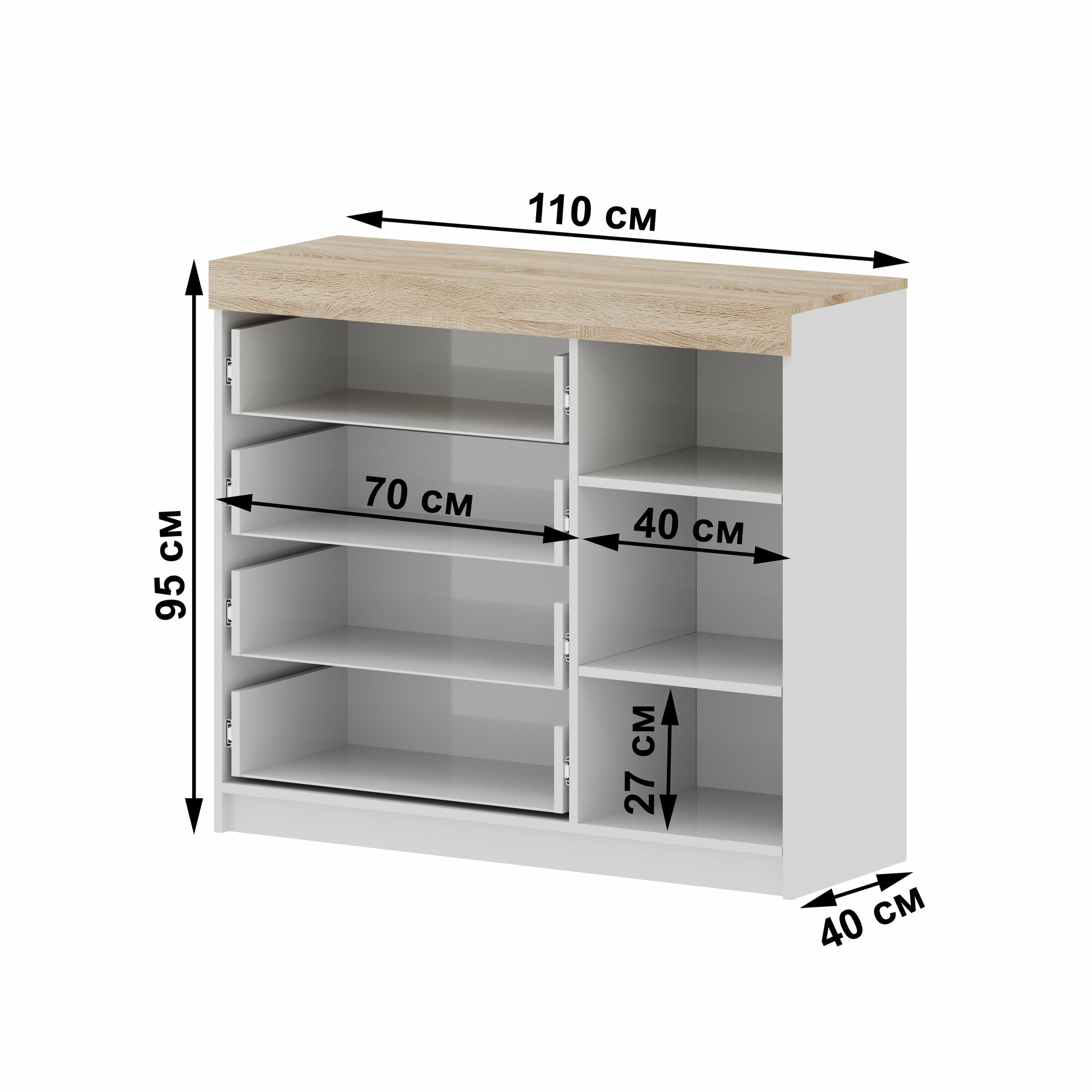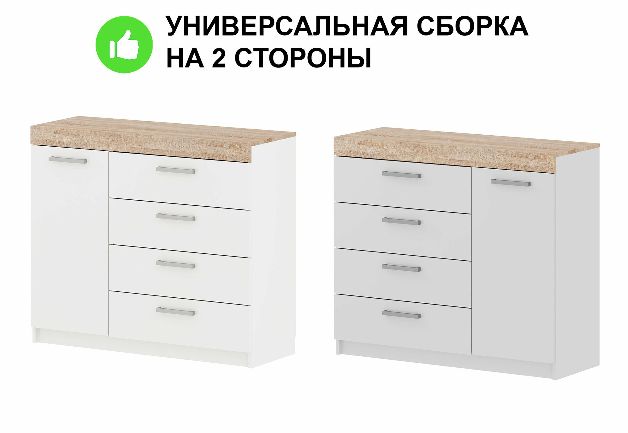 Комод "Модерн" №1-4 ящика (1 дверь), В*Ш*Г (см) 95х110х40, ЛДСП, белый / сонома