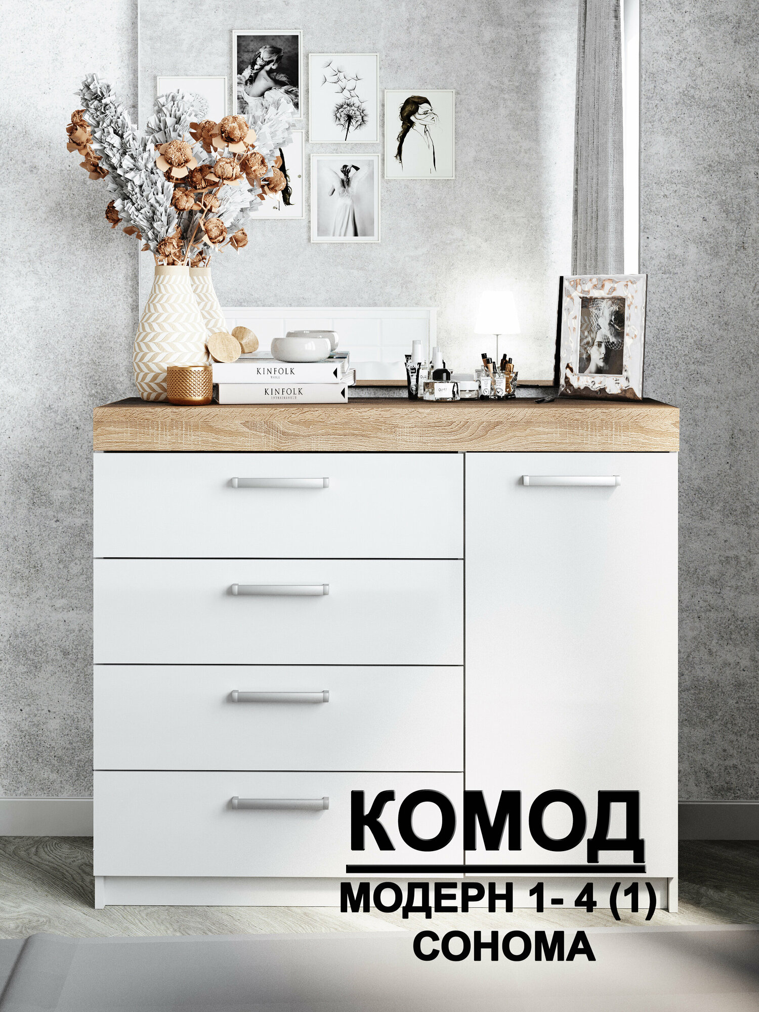 Комод Модерн №1-4 ящика (1 дверь) сонома интересное: