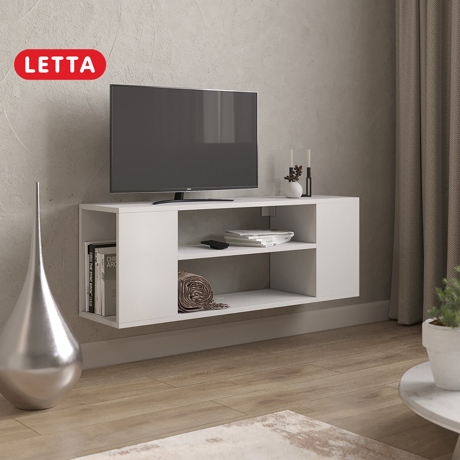Тумба под телевизор Letta "Лофт", ЛДСП, напольная, подвесная, белая, 100 x 26 x 33 см