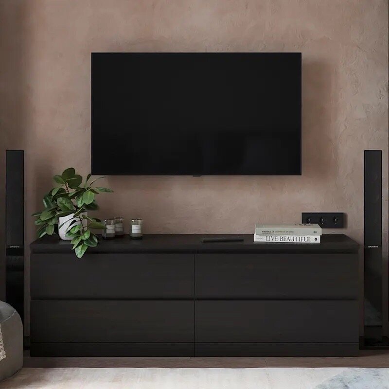 Тумба "Мальм Варма", 4 ящика 163х53х41см, ЛДСП, шпон ясеня, черная