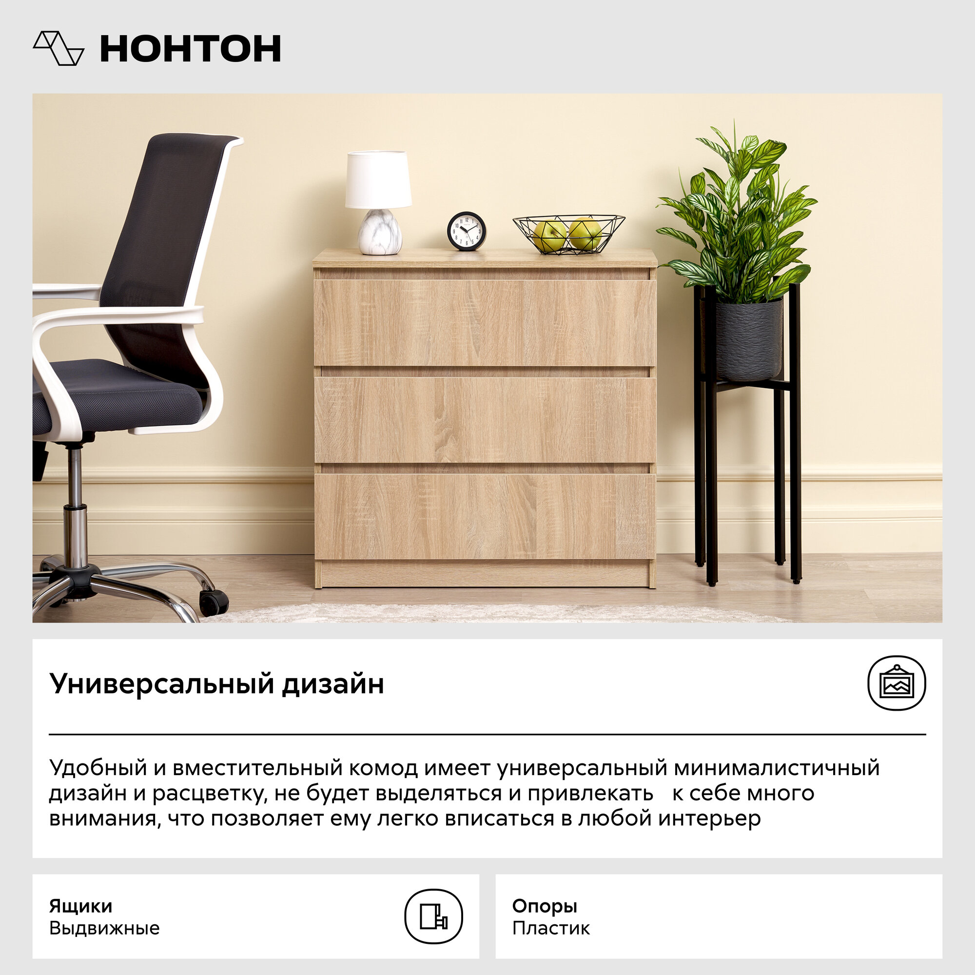 Купить Комод Миф Челси 800 с 3-мя ящиками дуб сонома 80.2х33х76.8 см