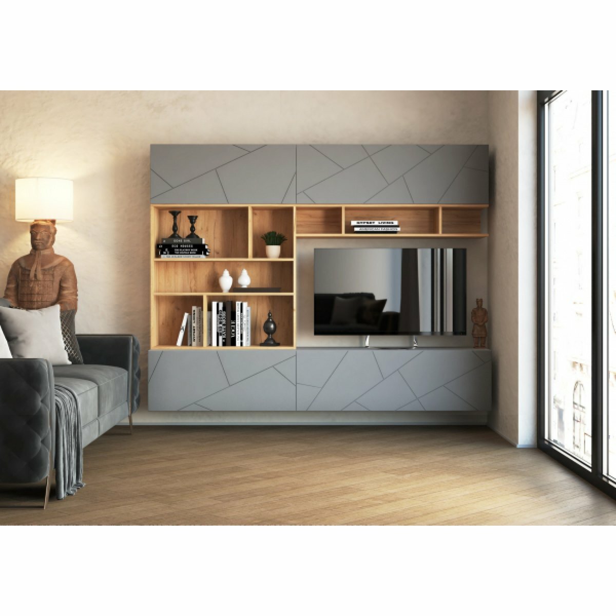 Тумба под ТВ МК Стиль Сканди серая Подвесная (без ножек) 213х35х35.2 см