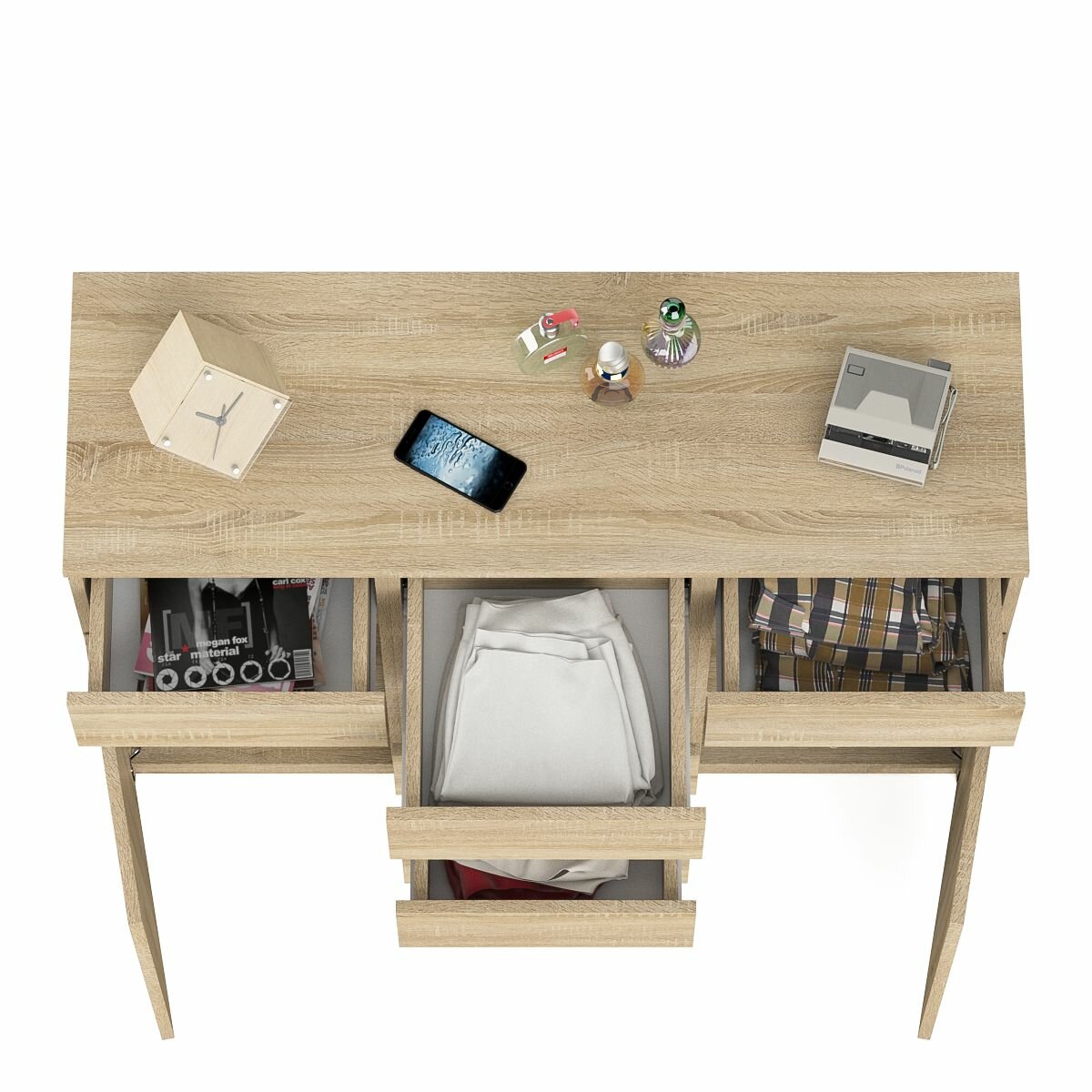 | Дополнительная информация | 6 выдвижных ящиков и 2 закрытые дверками отделения с полками; в верхней части расположены 3 ящика, под ними в центре отделение с ещё 3 ящиками и по бокам отделения с дверками; роль ручек выполняют сами фасады; роликовые направляющие неполного выдвижения; пластиковые подпятники; поставляется в разобранном виде |