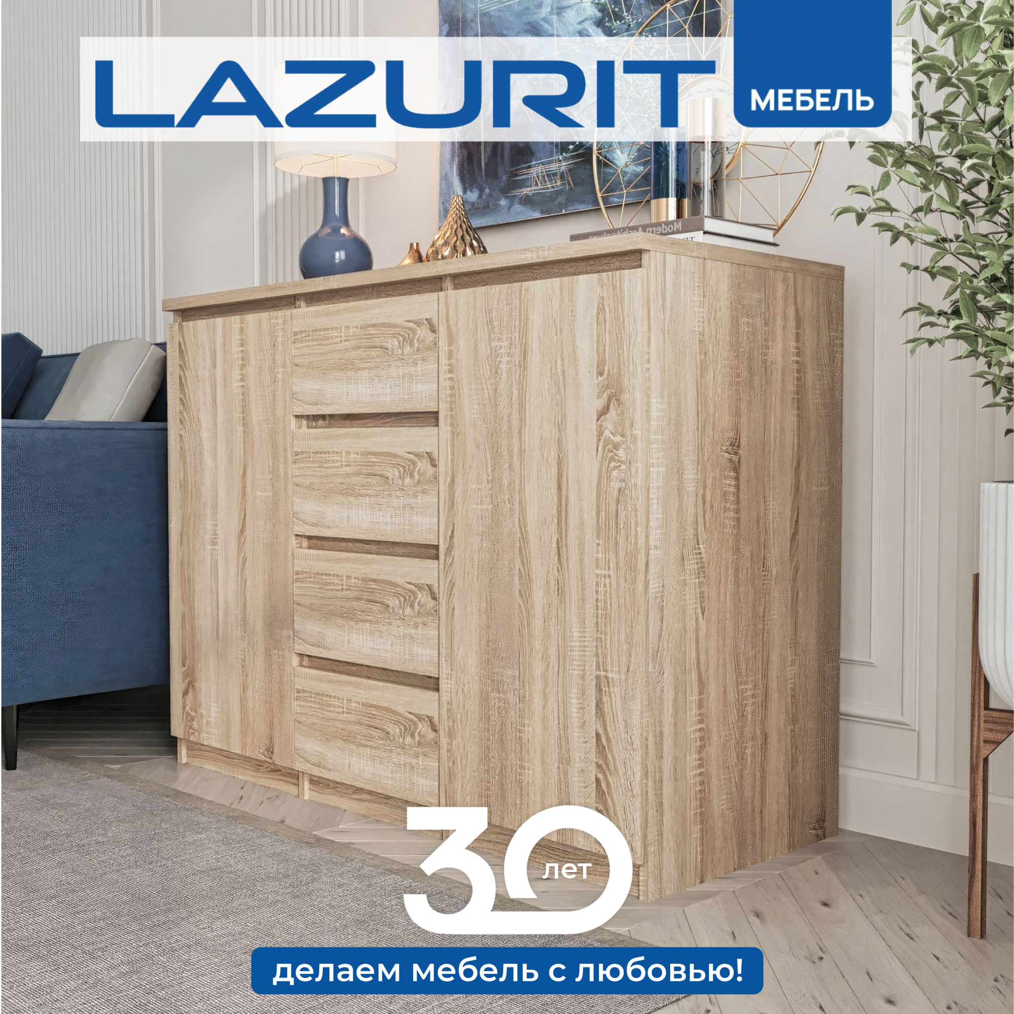 Комод для одежды Lazurit Sven большой с дверцами, тумба под телевизор с ящиками 121х51х92 см, сонома