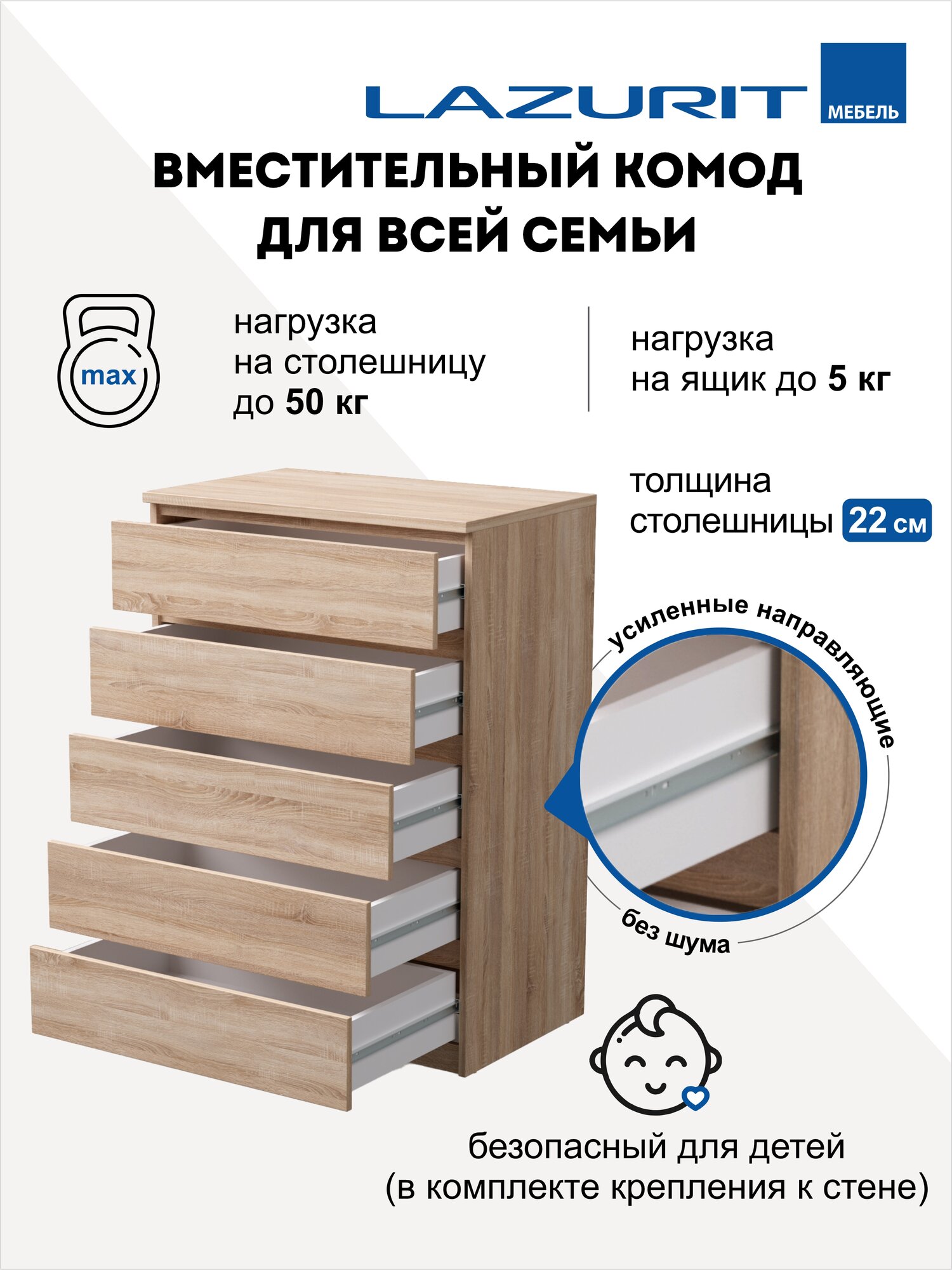 | Максимальная нагрузка на ящик | 5 кг |