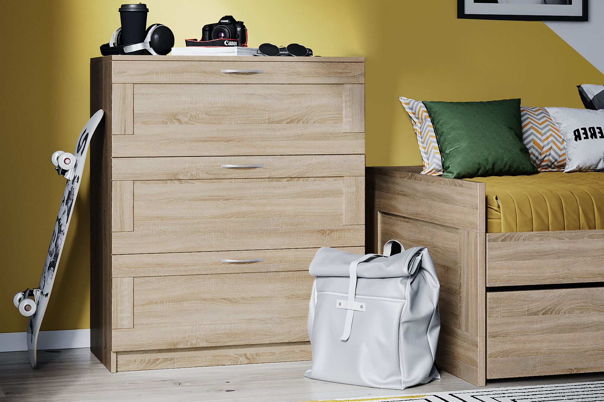Комод Шведский Стандарт Сириус 3 ящика дуб сонома