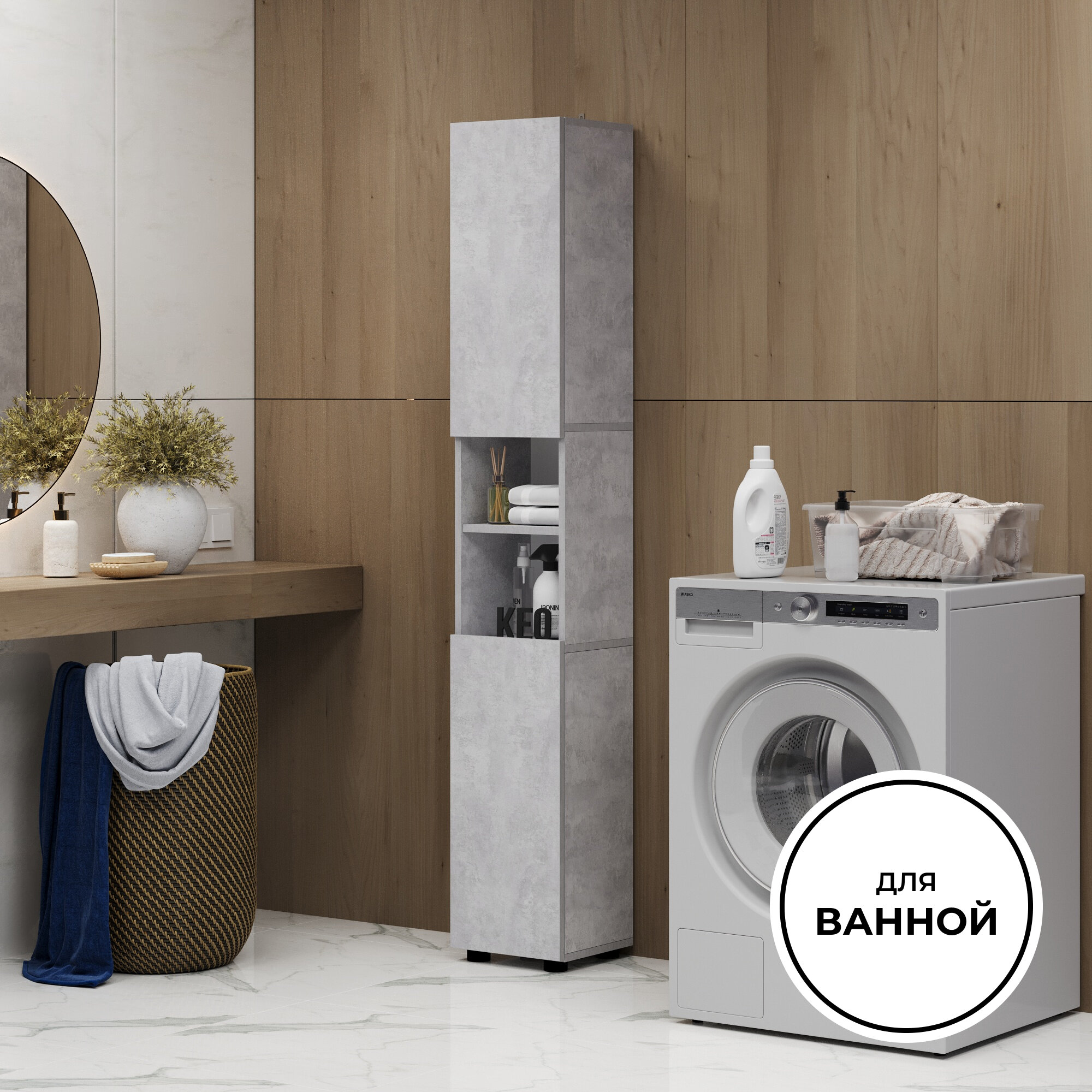 Купить Шкаф пенал напольный с полками для ванной прихожей балкона Кео ПН-100 бетон 1763х269х286 мм