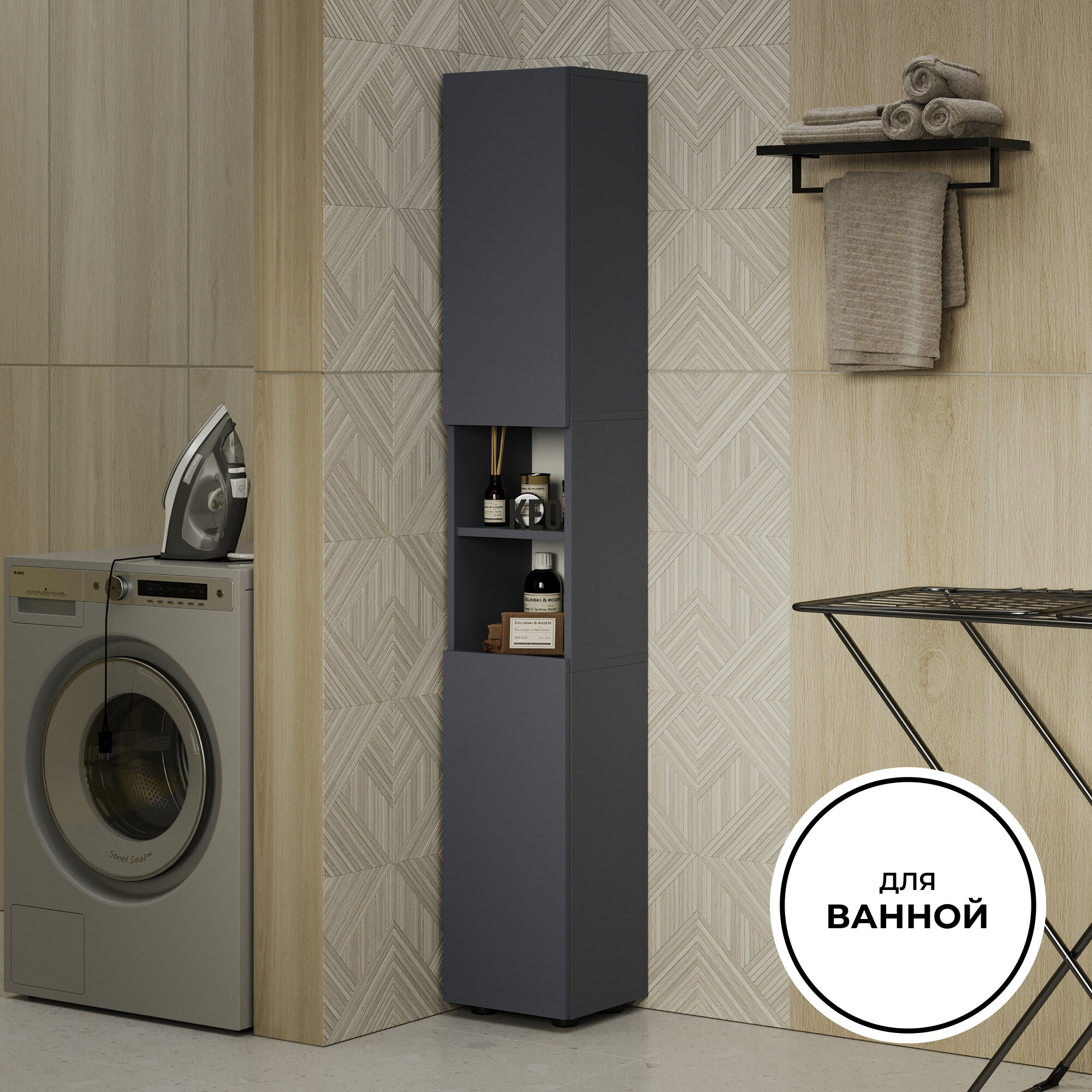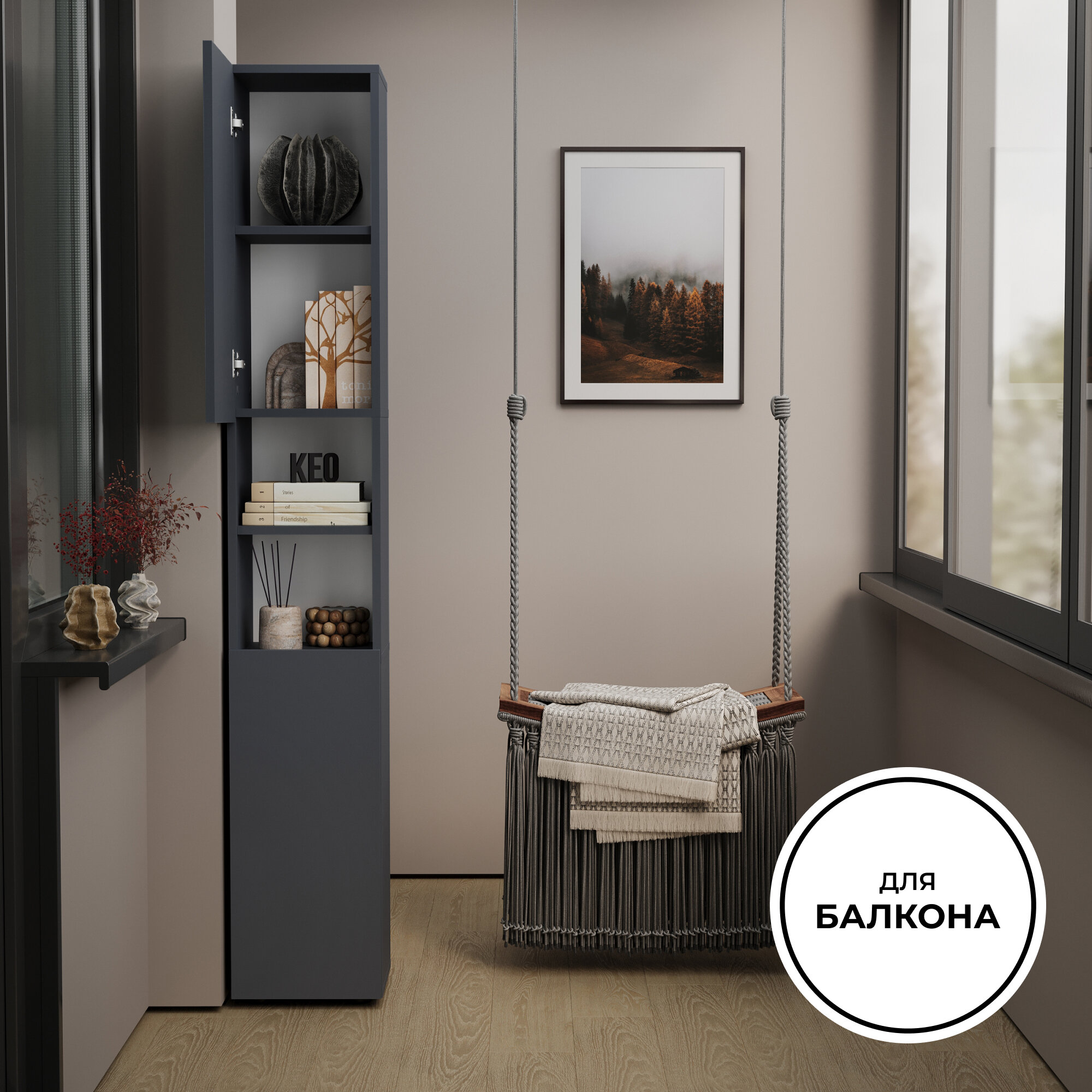Купить Шкаф пенал напольный с полками для ванной прихожей балкона Кео ПН-100 графит 1763х269х286 мм