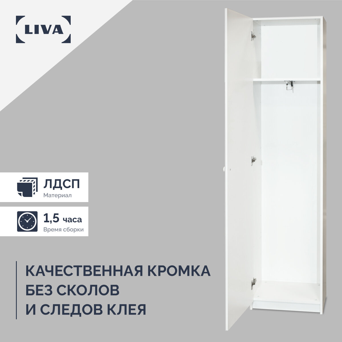 Шкаф-пенал для одежды в гостиную, прихожую, детскую, ЛДСП собственного производства, белый, LIVA интересное: