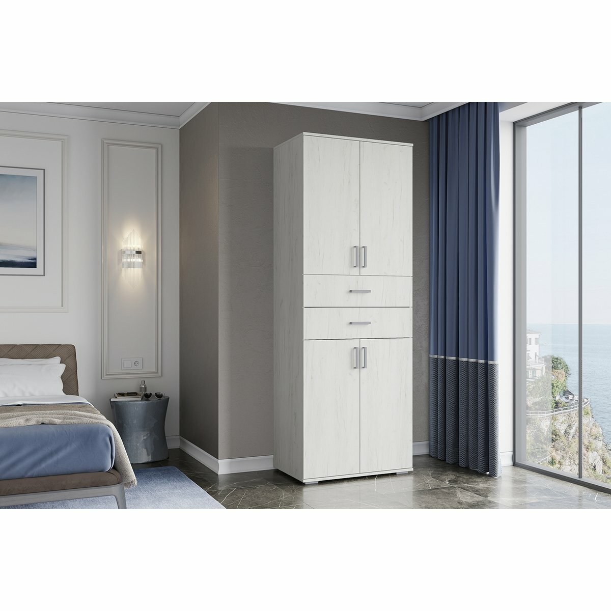 СохранитьСерия Нельсон ШК 05 Шкаф 2х дверный Стендмебель (80х220х50см) дуб крафт белый-дуб крафт белый интересное:
