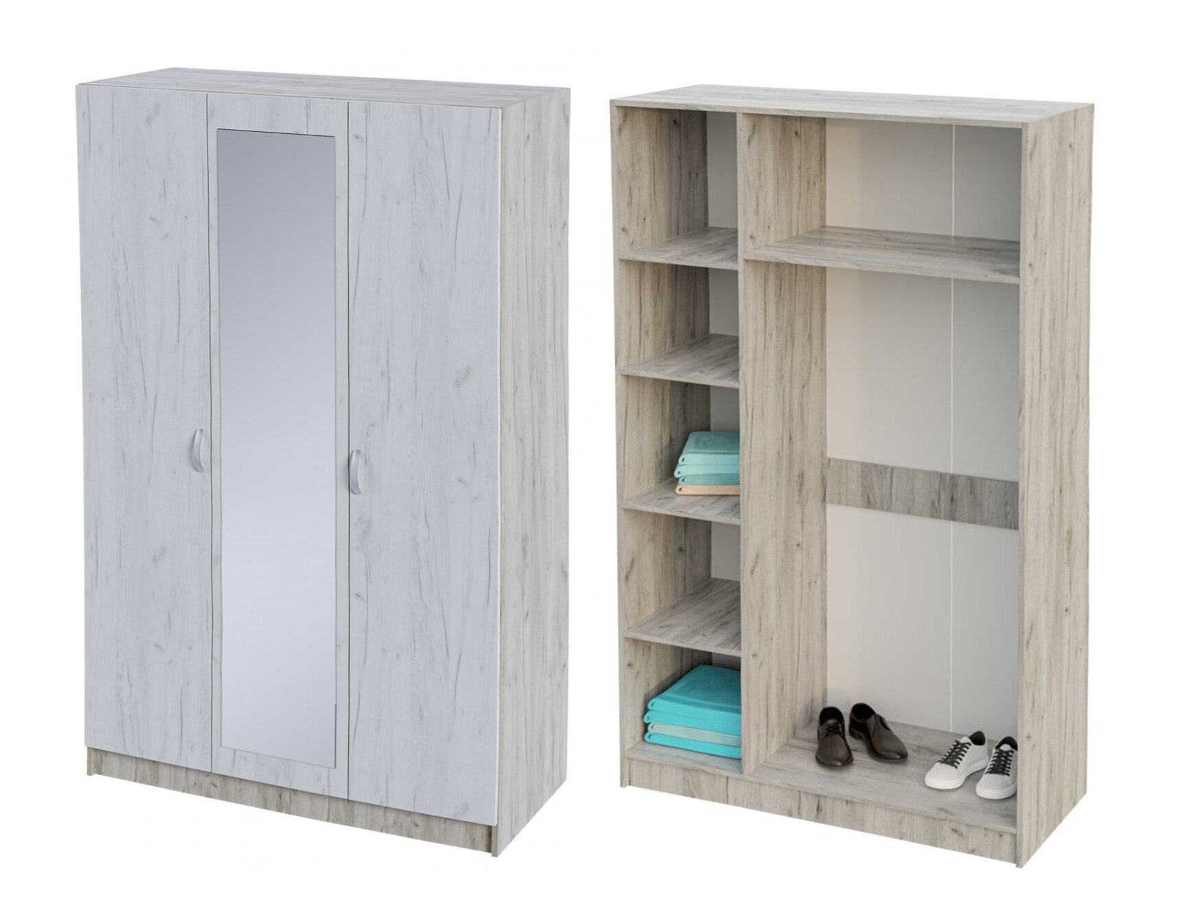 Шкаф распашной Басса ШК 557, дуб крафт серый/дуб крафт белый