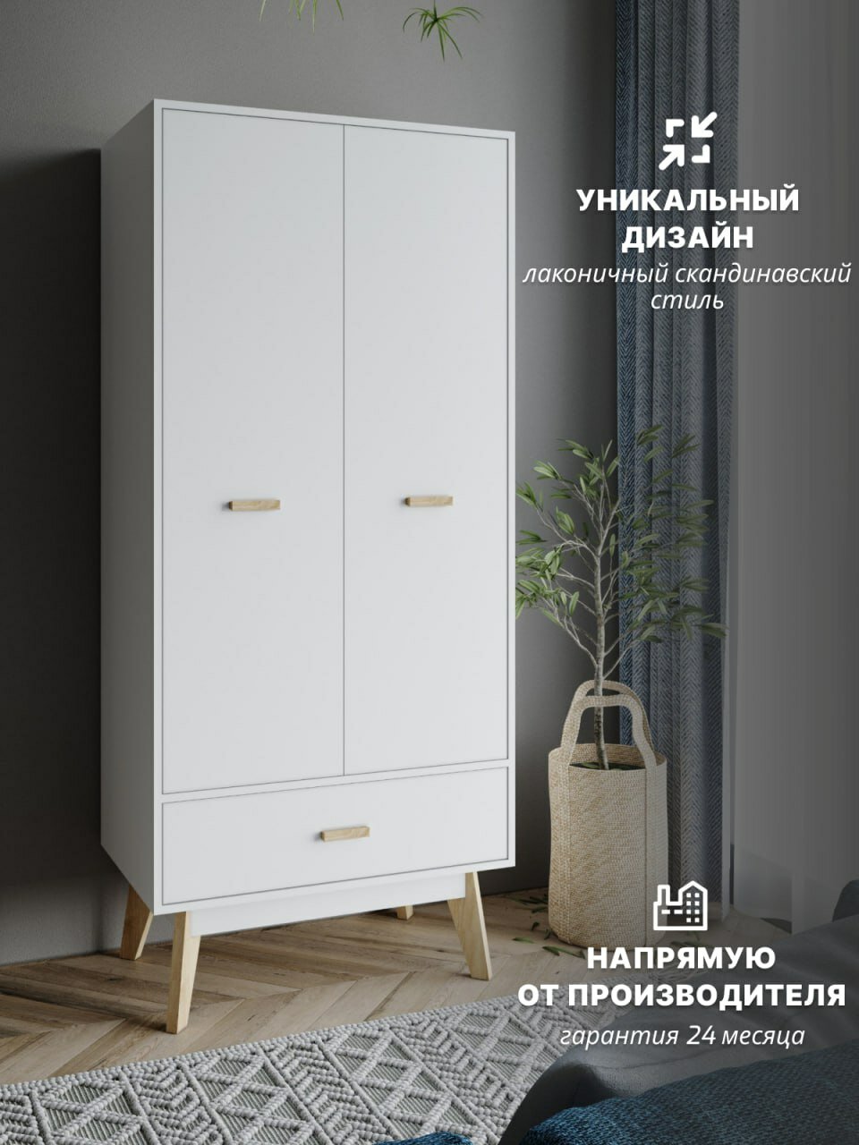Купить Шкаф распашной двухдверный с ящиком белый 2113 / Шкаф для одежды, размер 185х80х50 см, Принцесса Мелания