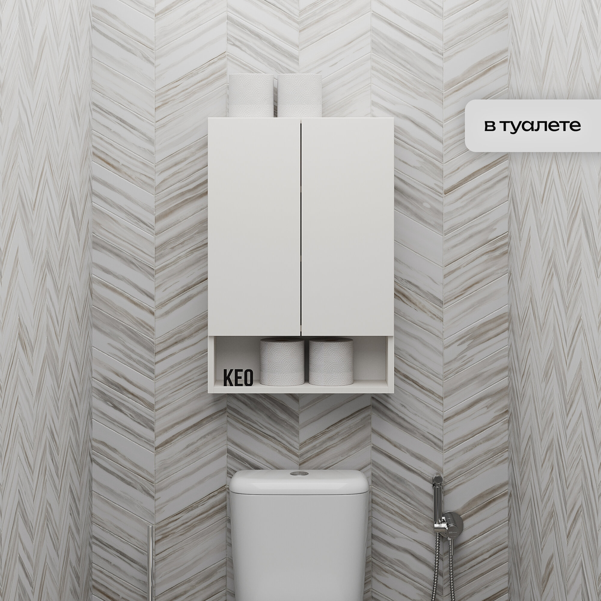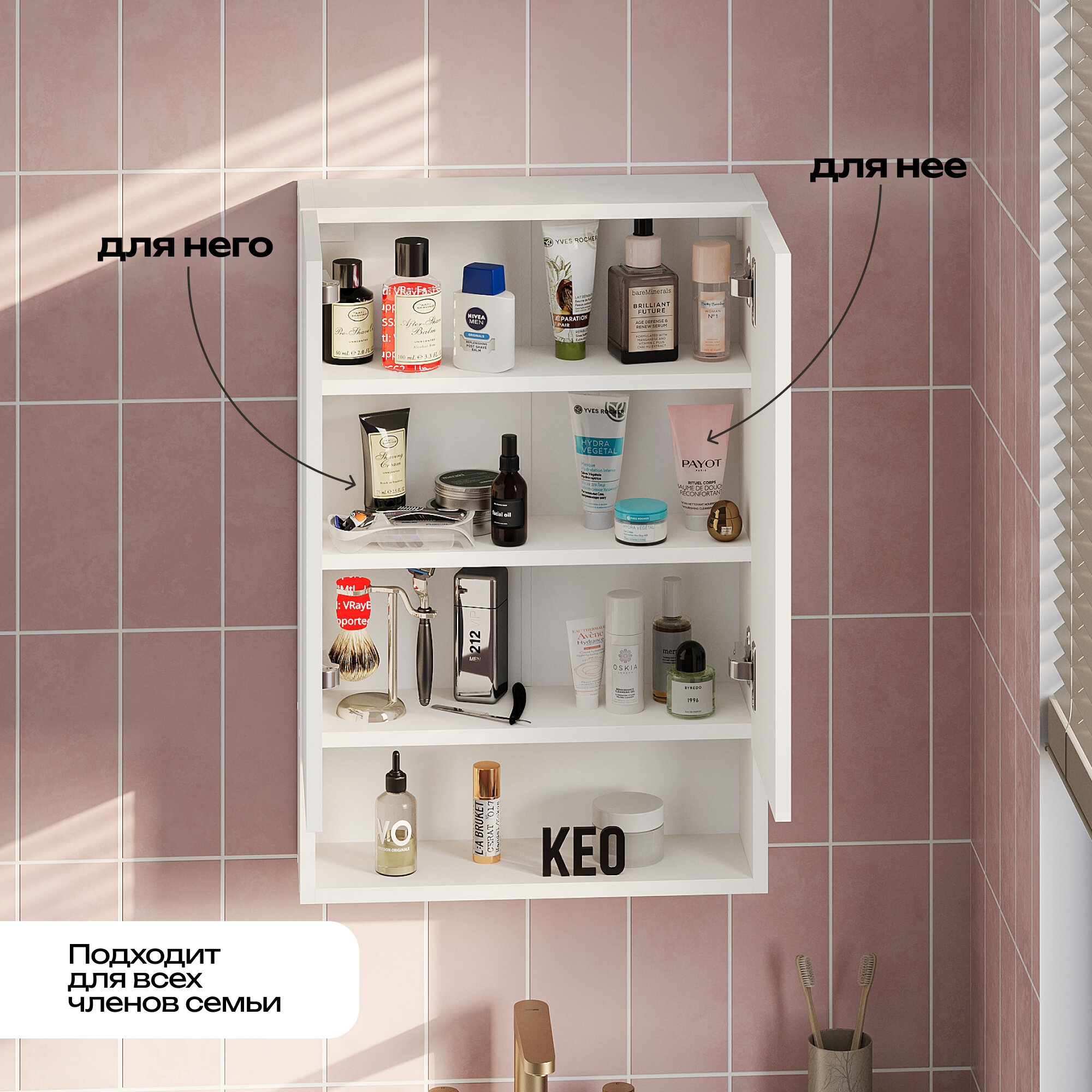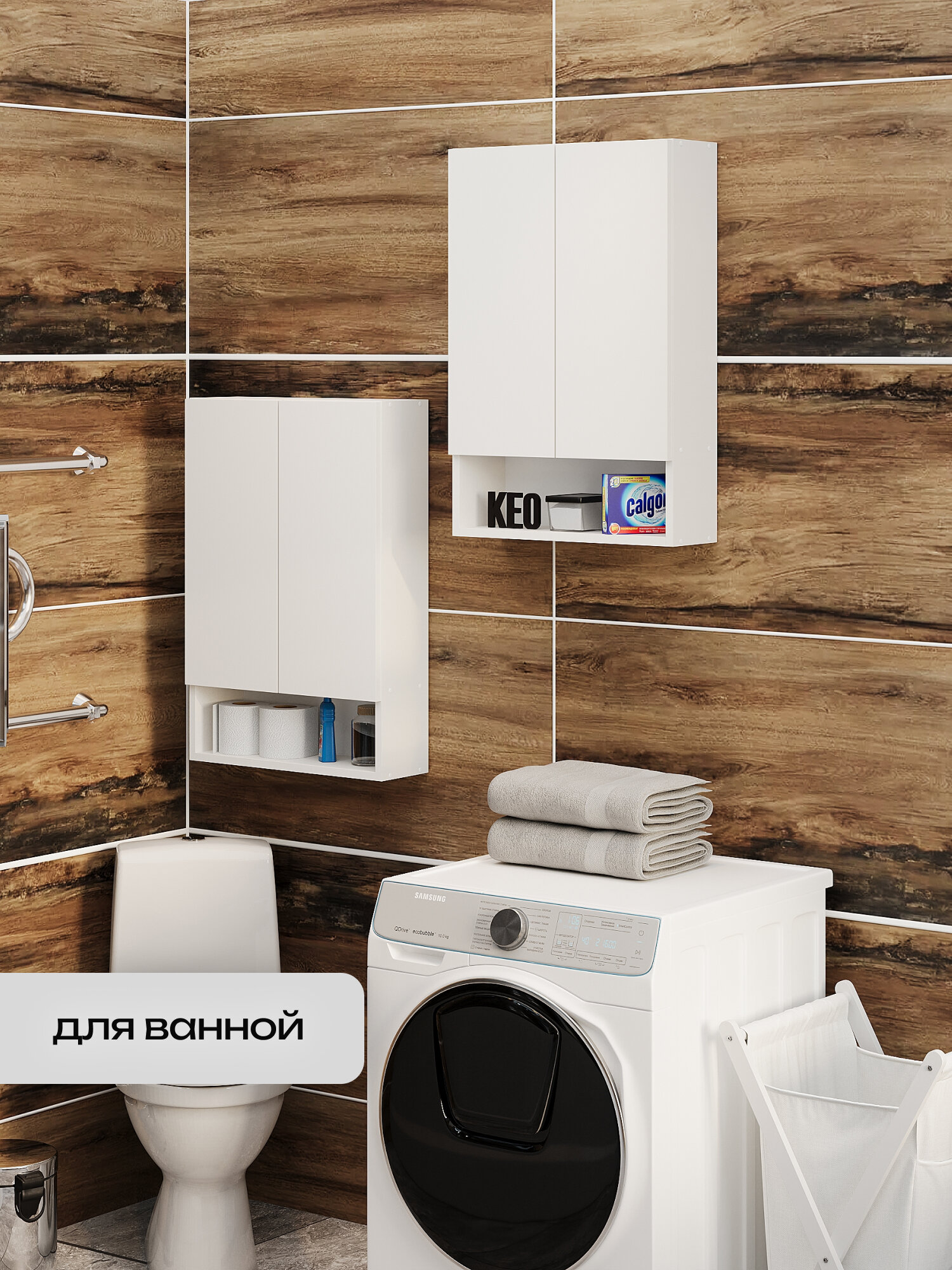 Шкаф навесной для ванной прихожей в ванную деревянный Кео ШКН-160 молочный белый 740х169х300 мм