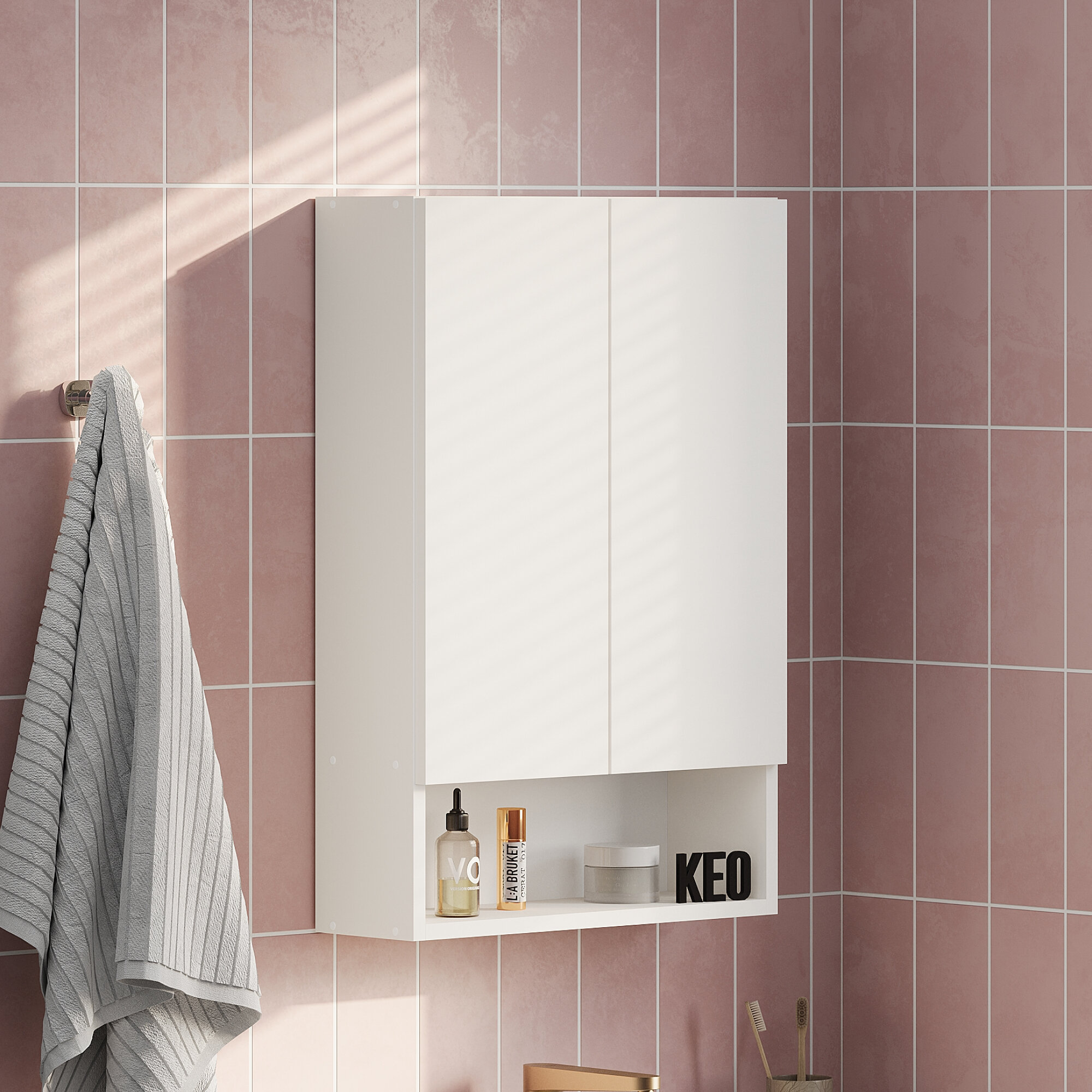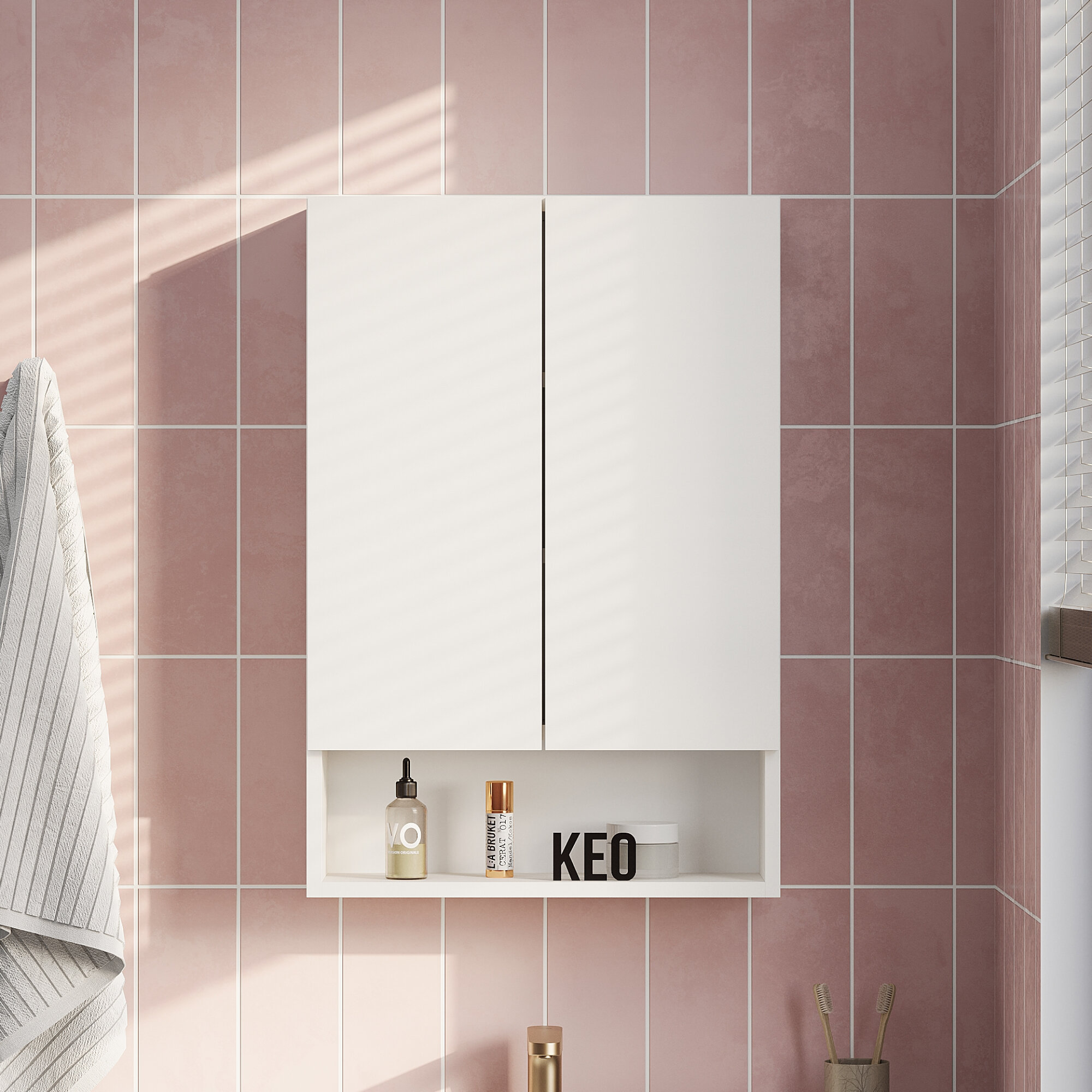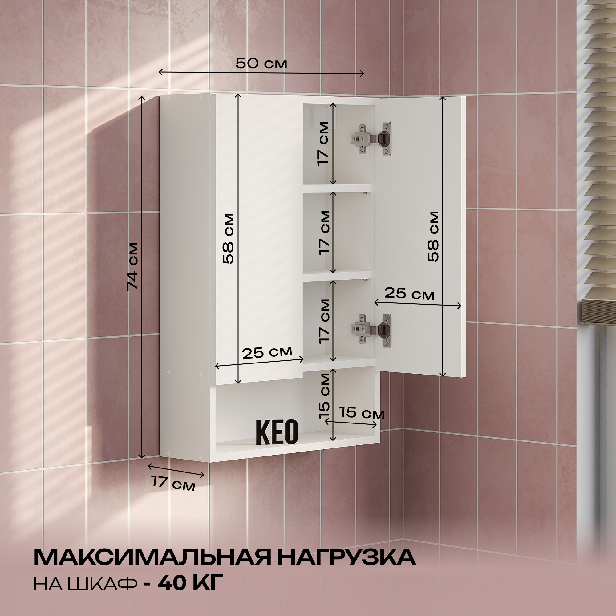 Купить Шкаф навесной с полками для ванной прихожей балкона подвесной Кео ШКН-130 молочный белый 740х169х500 мм