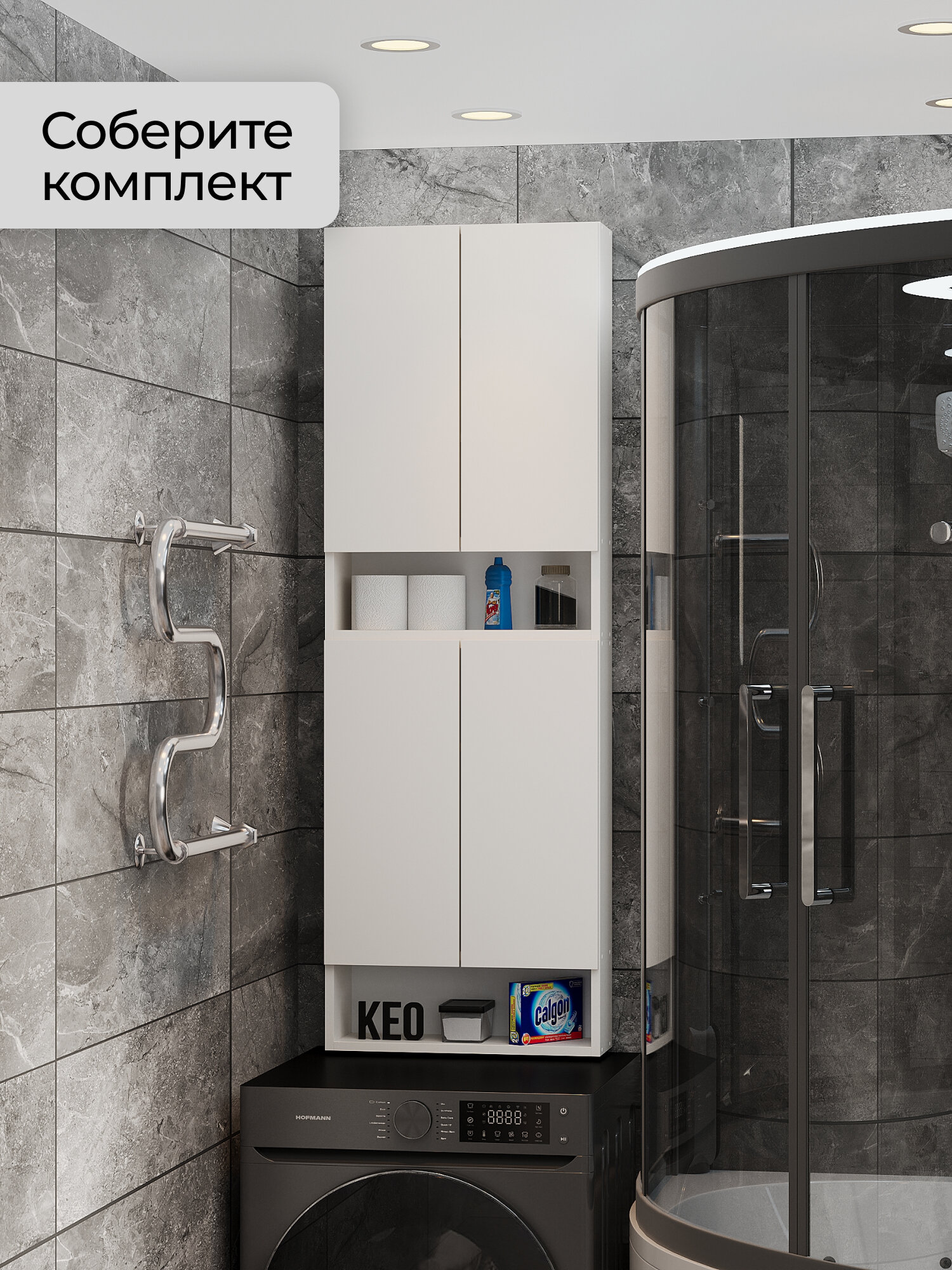 Шкаф пенал навесной для ванной, кухни, гостиной, прихожей Кео ШКН-200 молочный белый 745х219х450 мм
