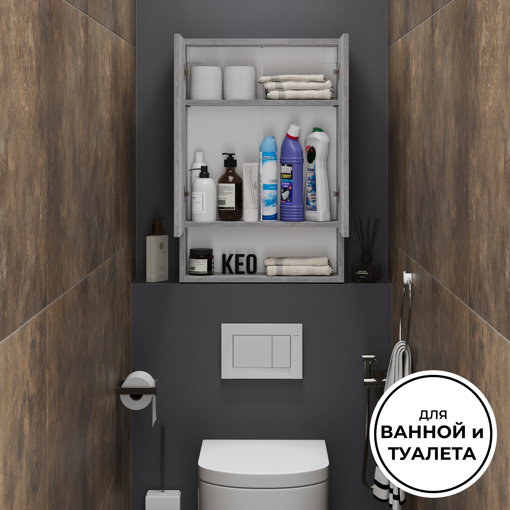 Купить Шкаф навесной с полками для ванной прихожей балкона подвесной деревянный Кео ШКН-130 Бетон 740х169х500 мм