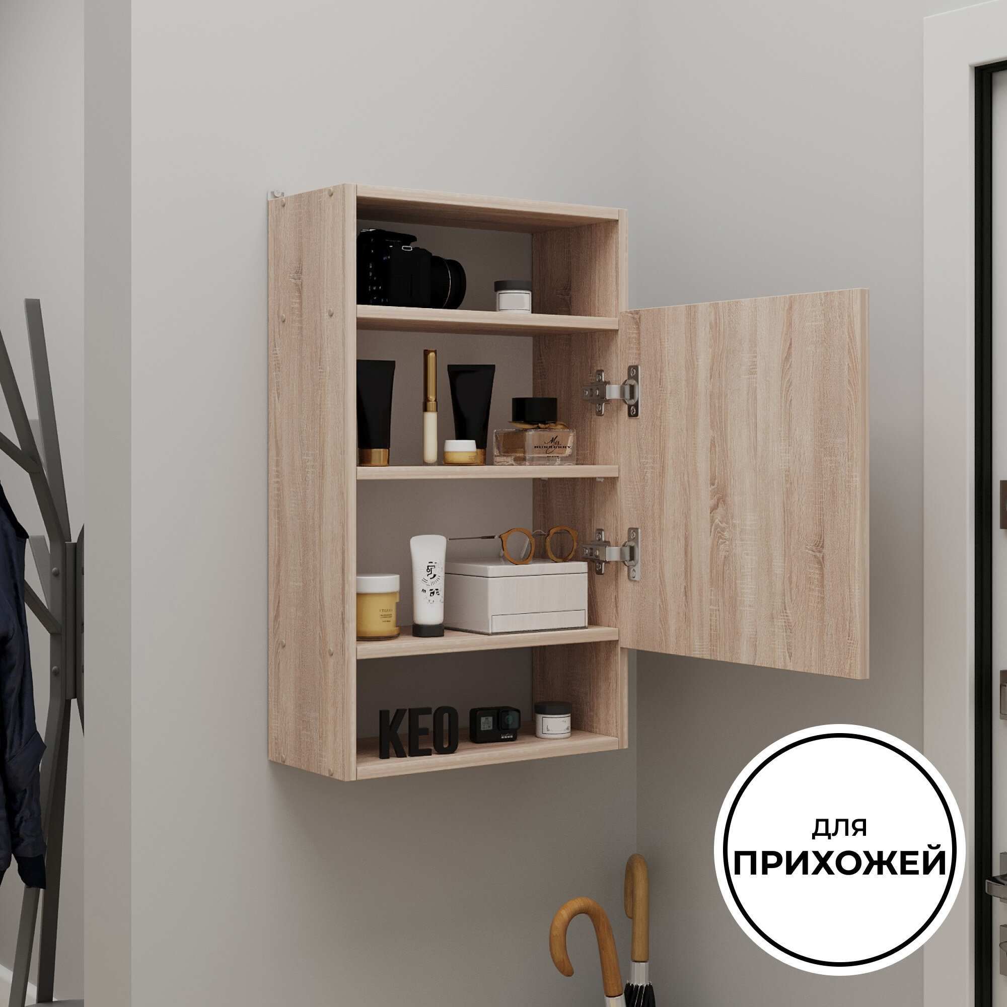 Шкаф навесной 74х16,9х50см с полками подвесной деревянный для ванной прихожей балкона Кео ШКН-130 бежевый Дуб Сонома