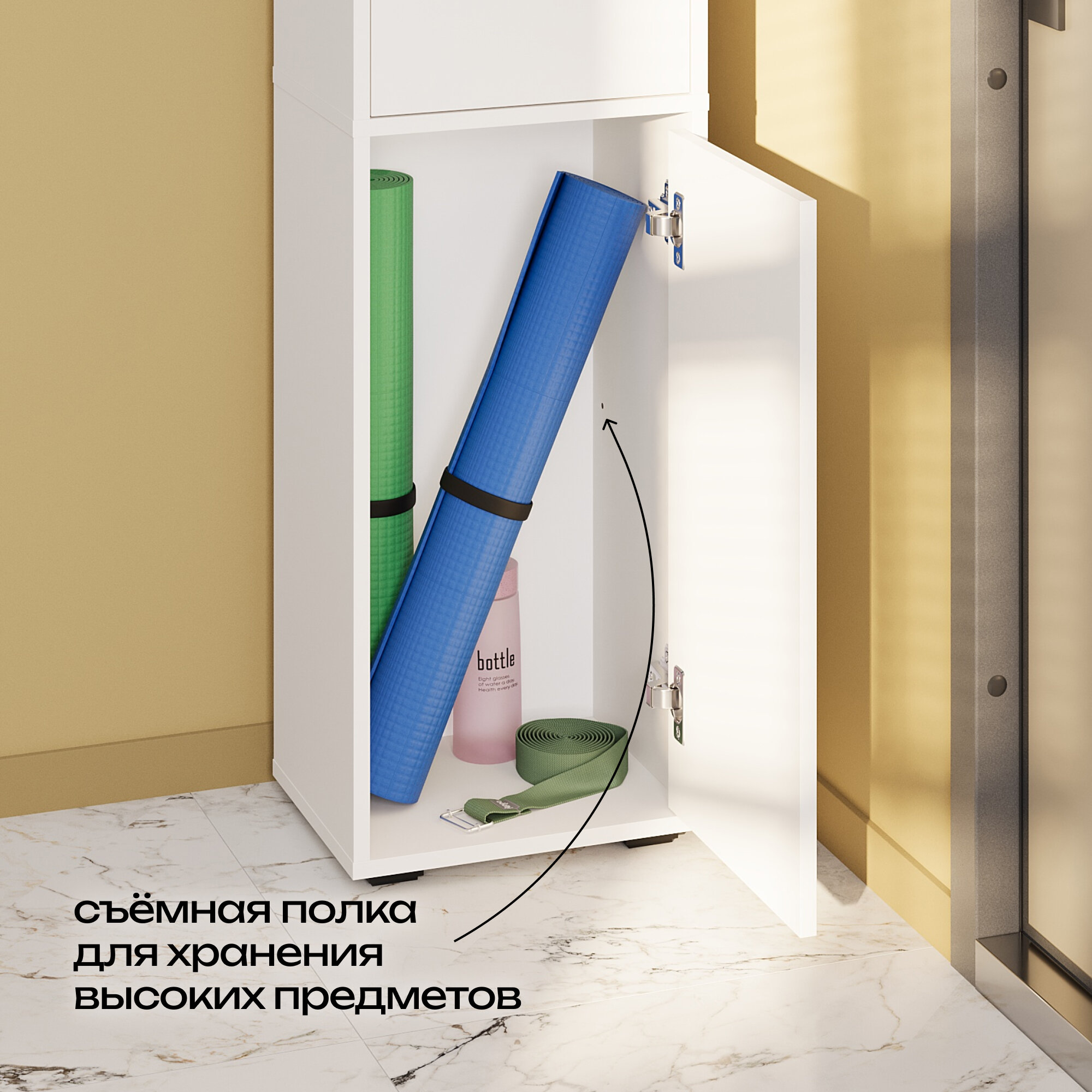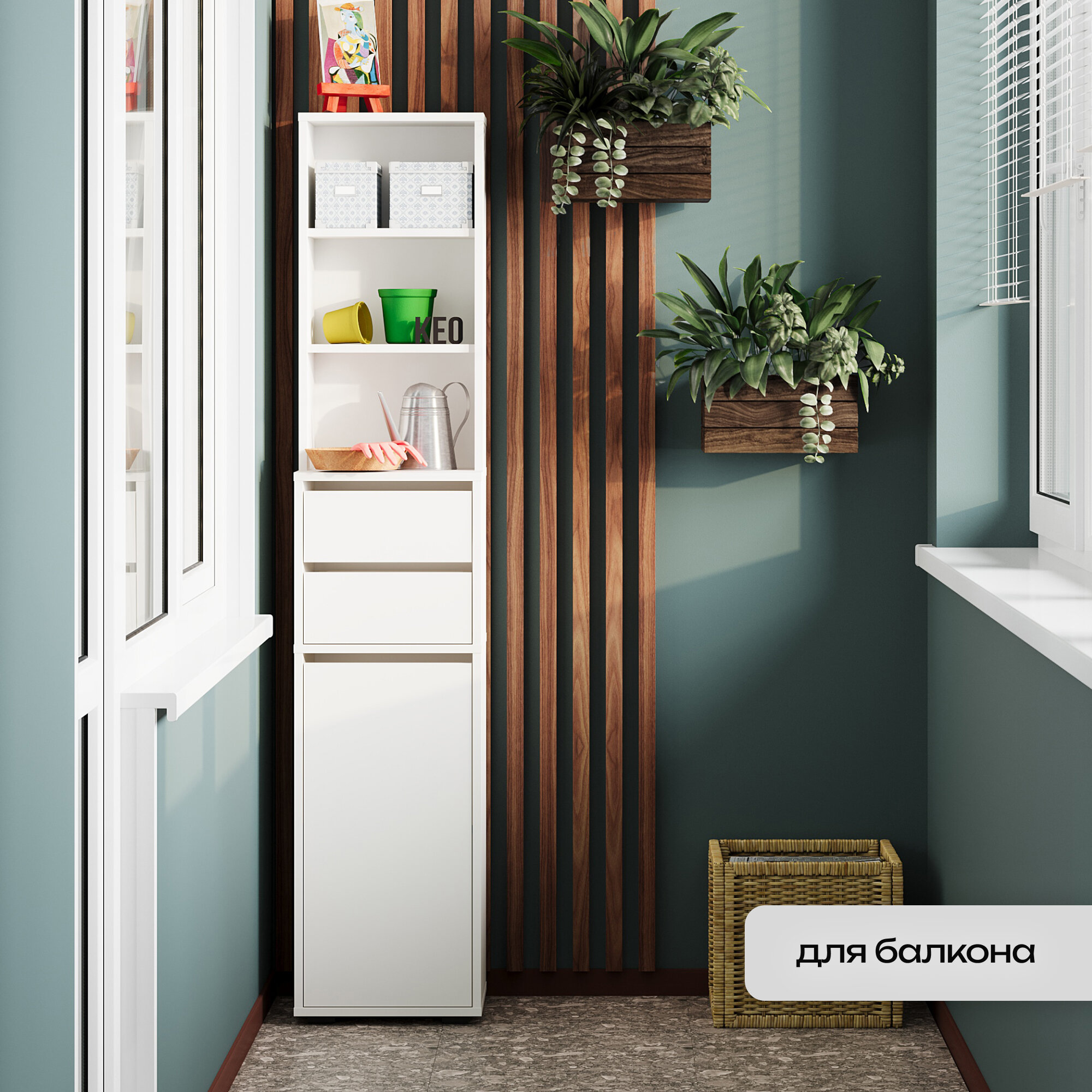 Шкаф пенал 203,9х26,9х25,2 см напольный с полками высокий узкий в ванную прихожую кухню балкон стеллаж Кео ПНП-411 Белый