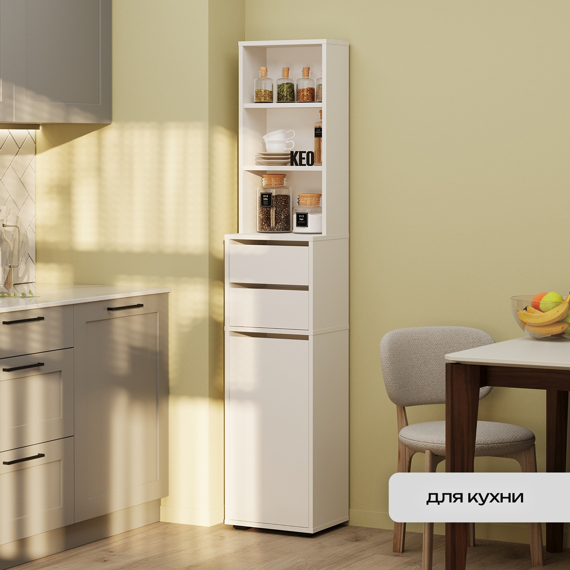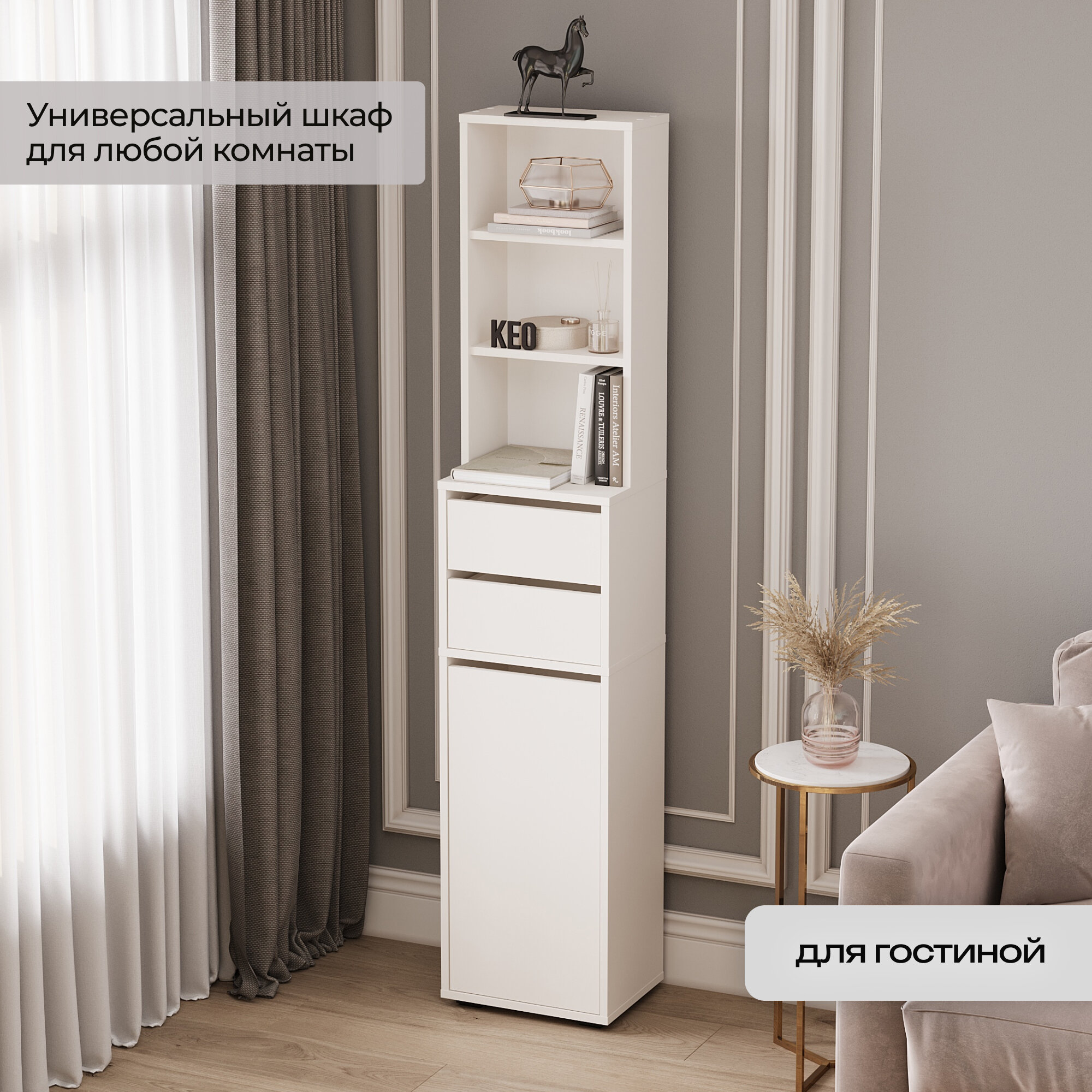 Купить Шкаф пенал напольный с полками и выдвижными ящиками для прихожей балкона Кео ШКН-402 молочный белый 1763х281х360 мм
