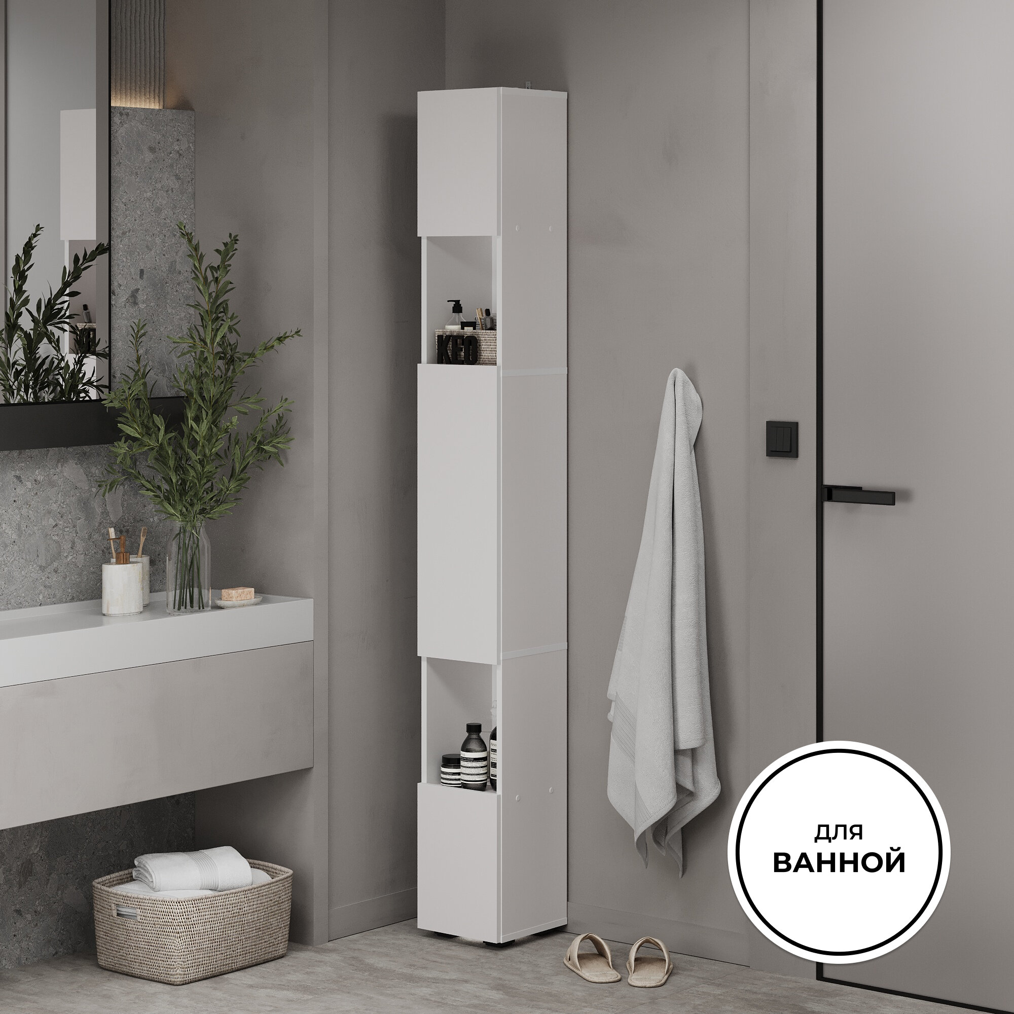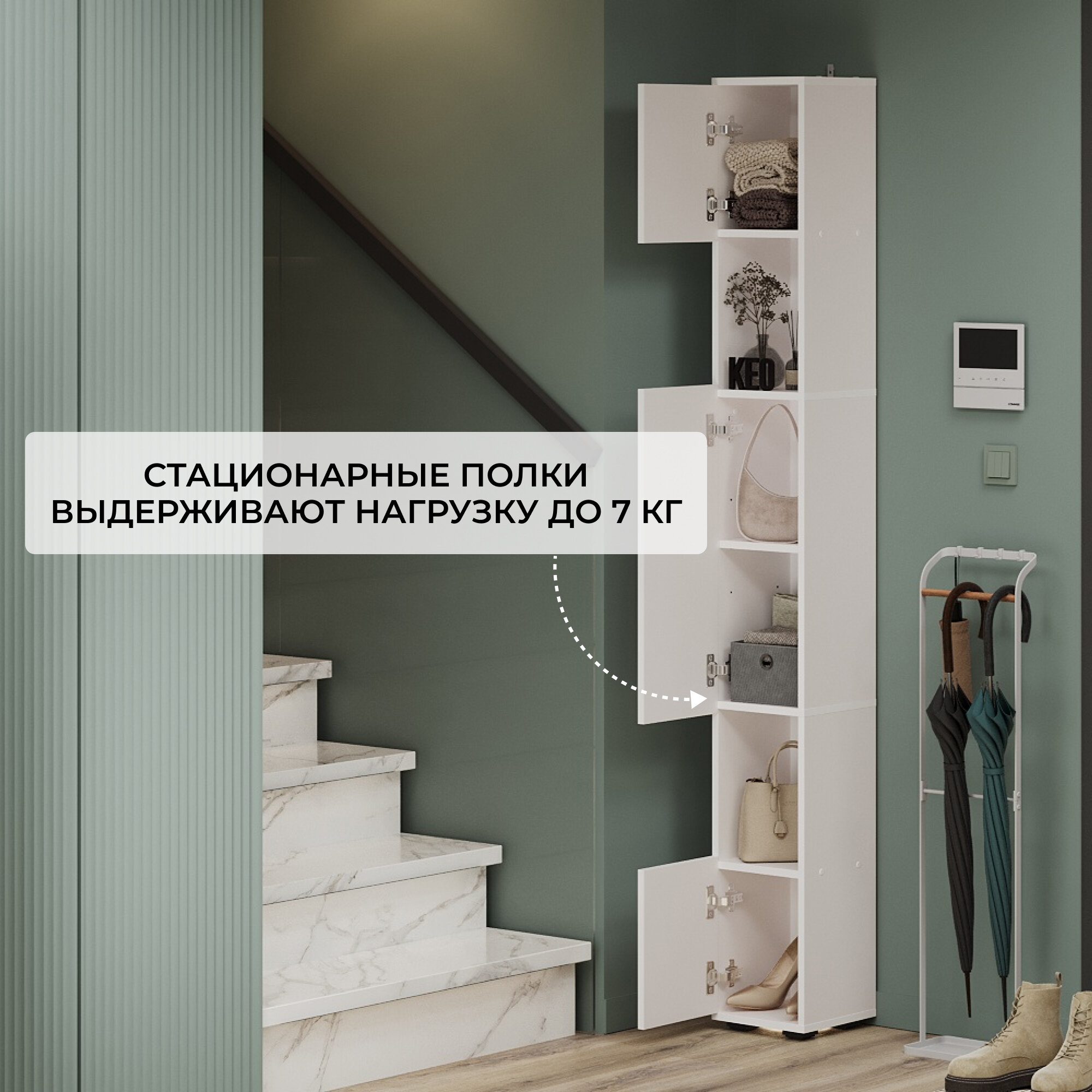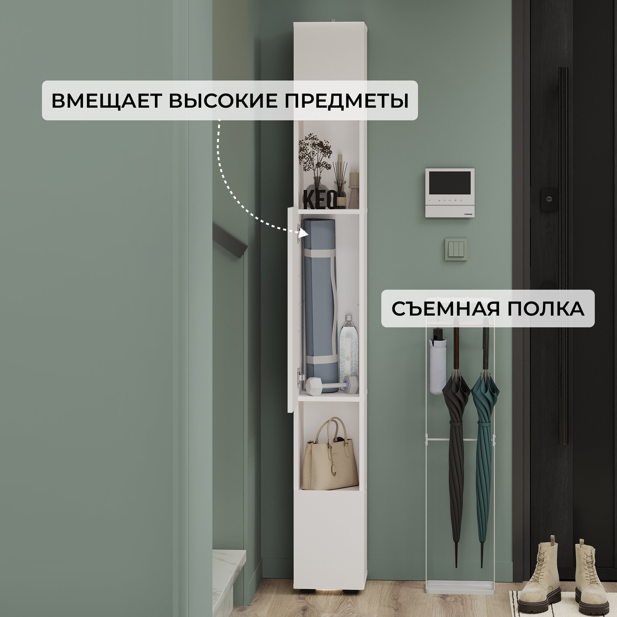 СохранитьШкаф пенал узкий высокий напольный Кео ПНП-411 белый в прихожую ванную на балкон для кухни 2039х269х252 мм интересное: