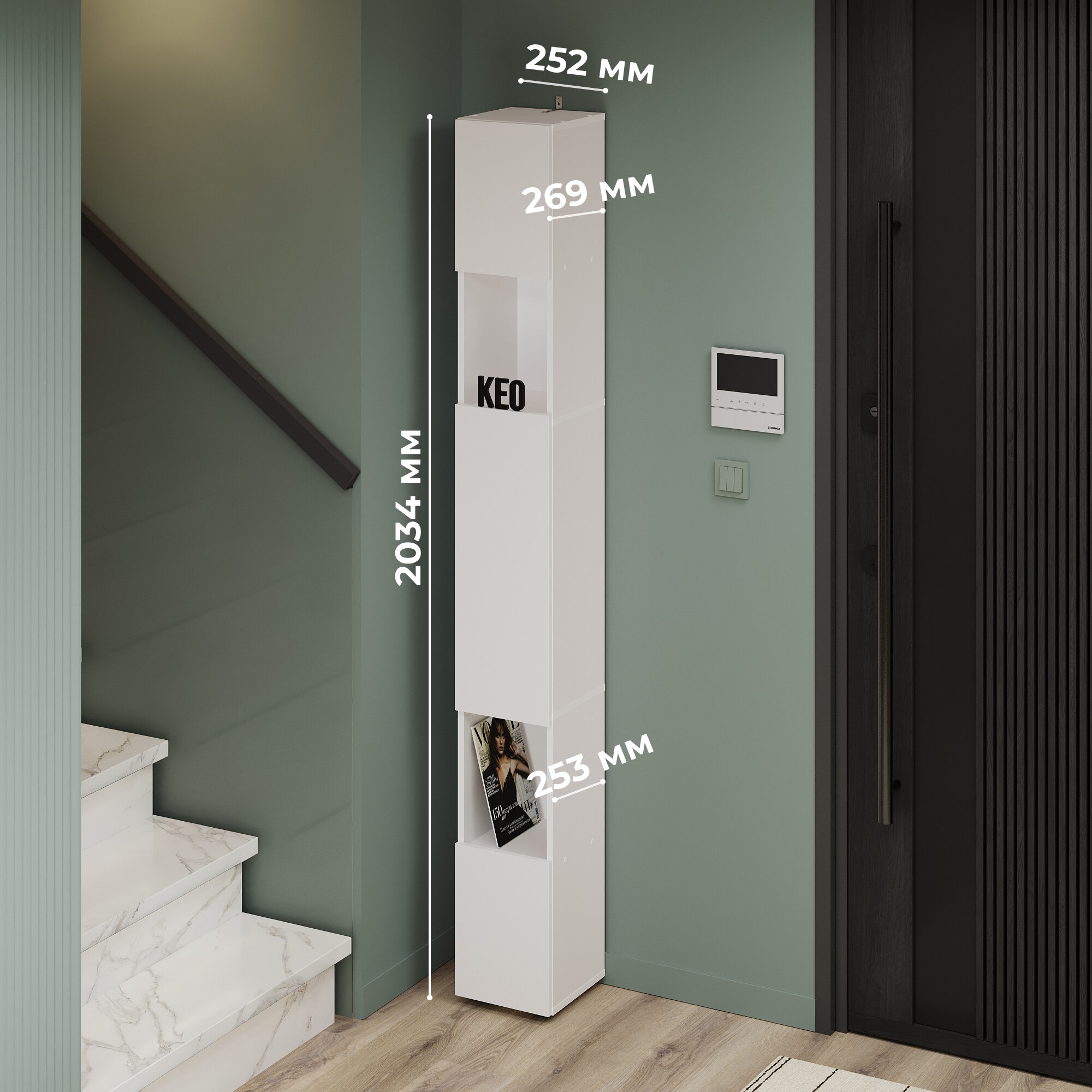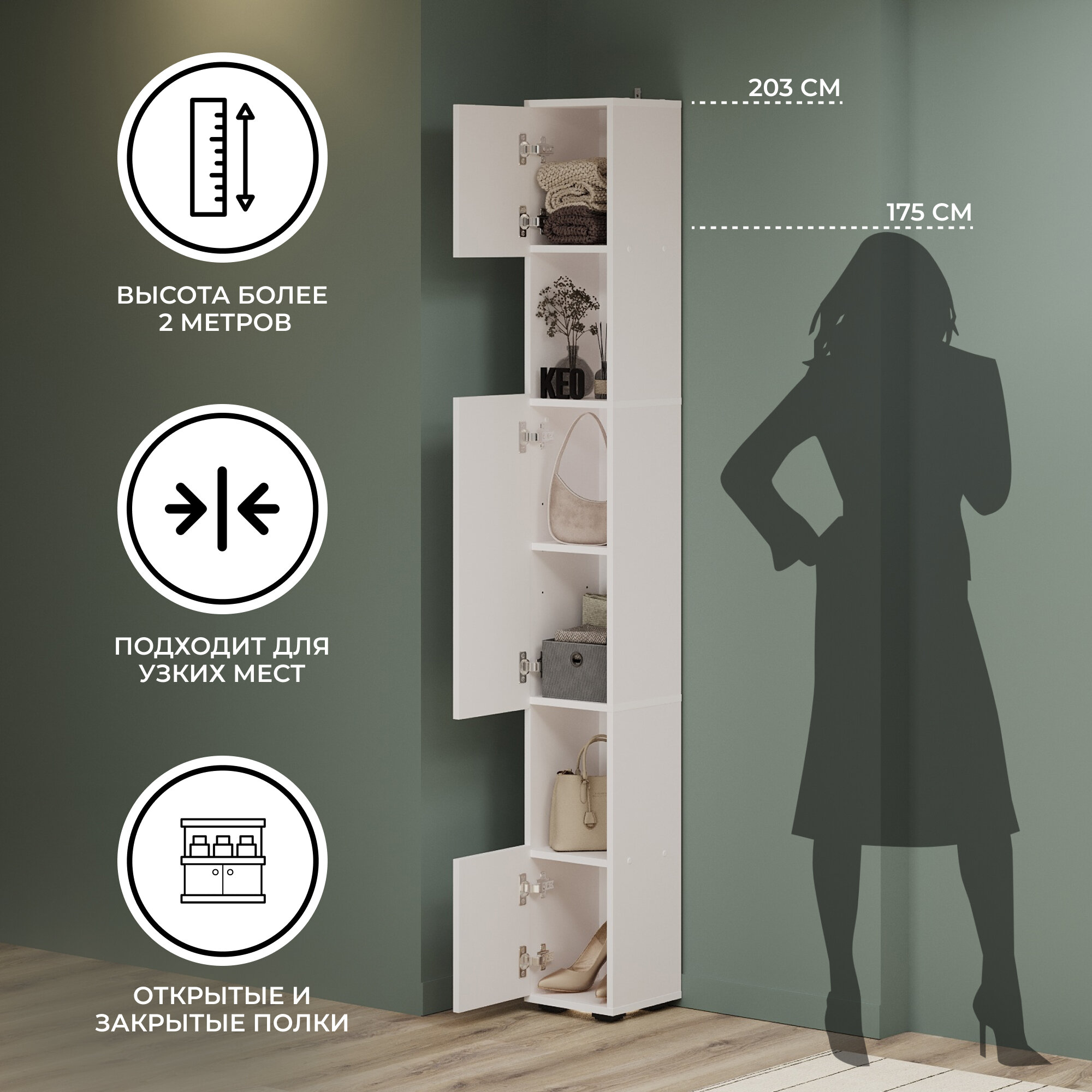 Купить Шкаф пенал узкий высокий напольный Кео ПНП-411 белый в прихожую ванную на балкон для кухни 2039х269х252 мм