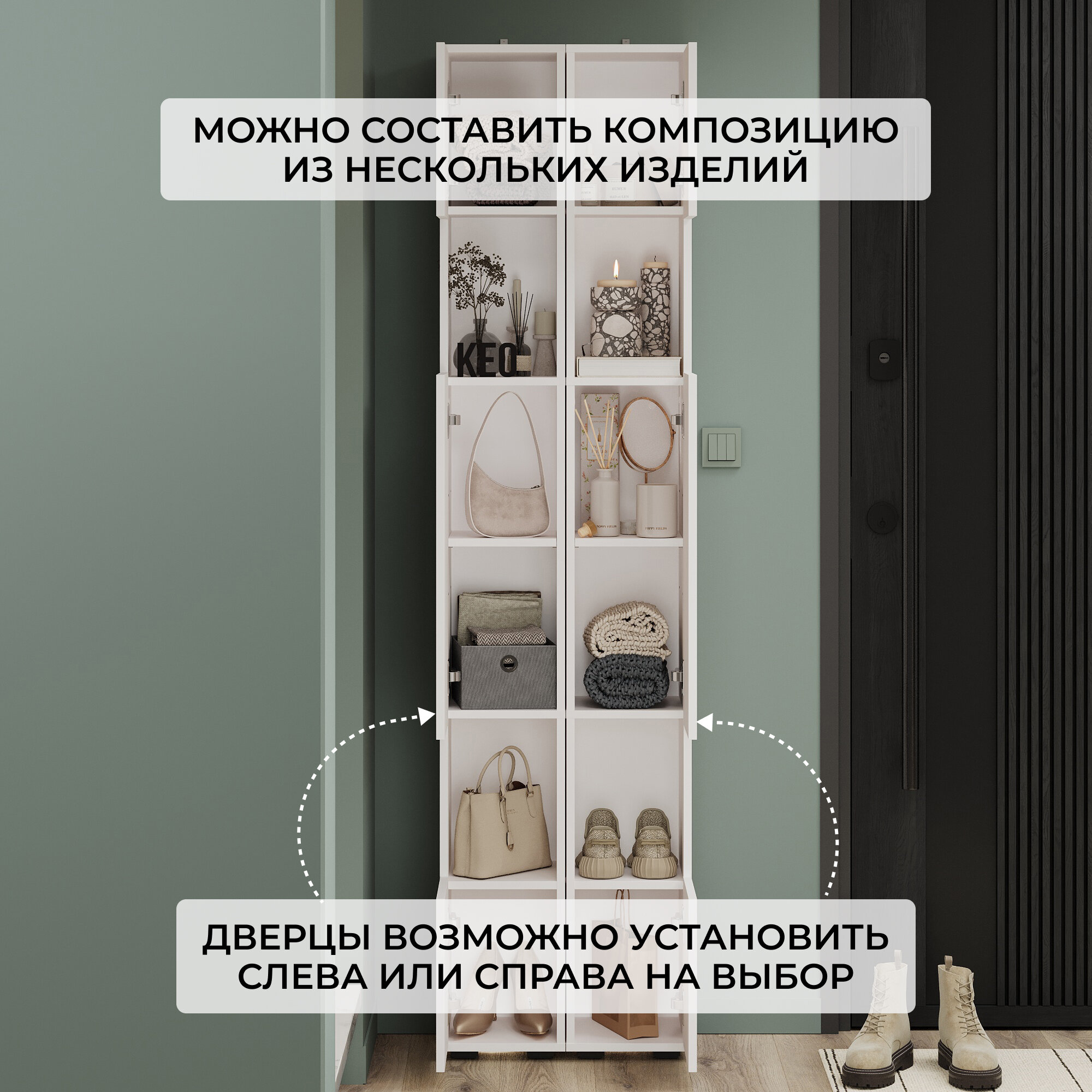 Шкаф Локер "Push to Move" Левый, 81х52.5х220, Мебельная компания Е1, Белый снег