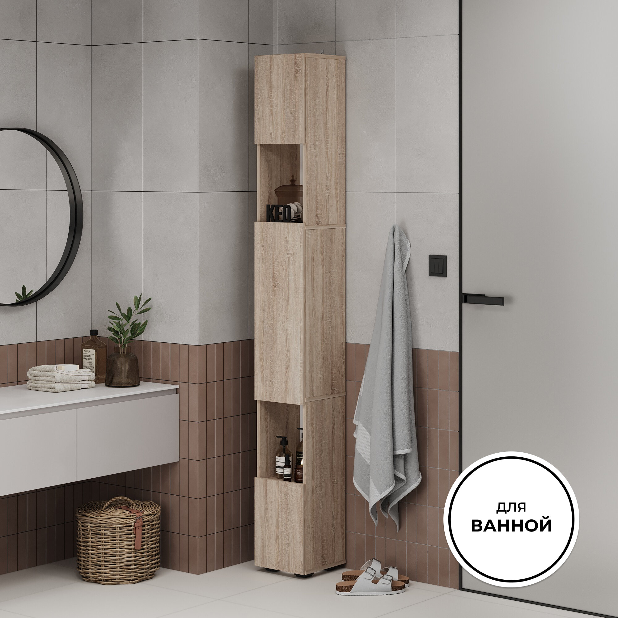 Купить Шкаф пенал узкий высокий напольный Кео ПНП-411 сонома в прихожую ванную на балкон для кухни 2039х269х252 мм