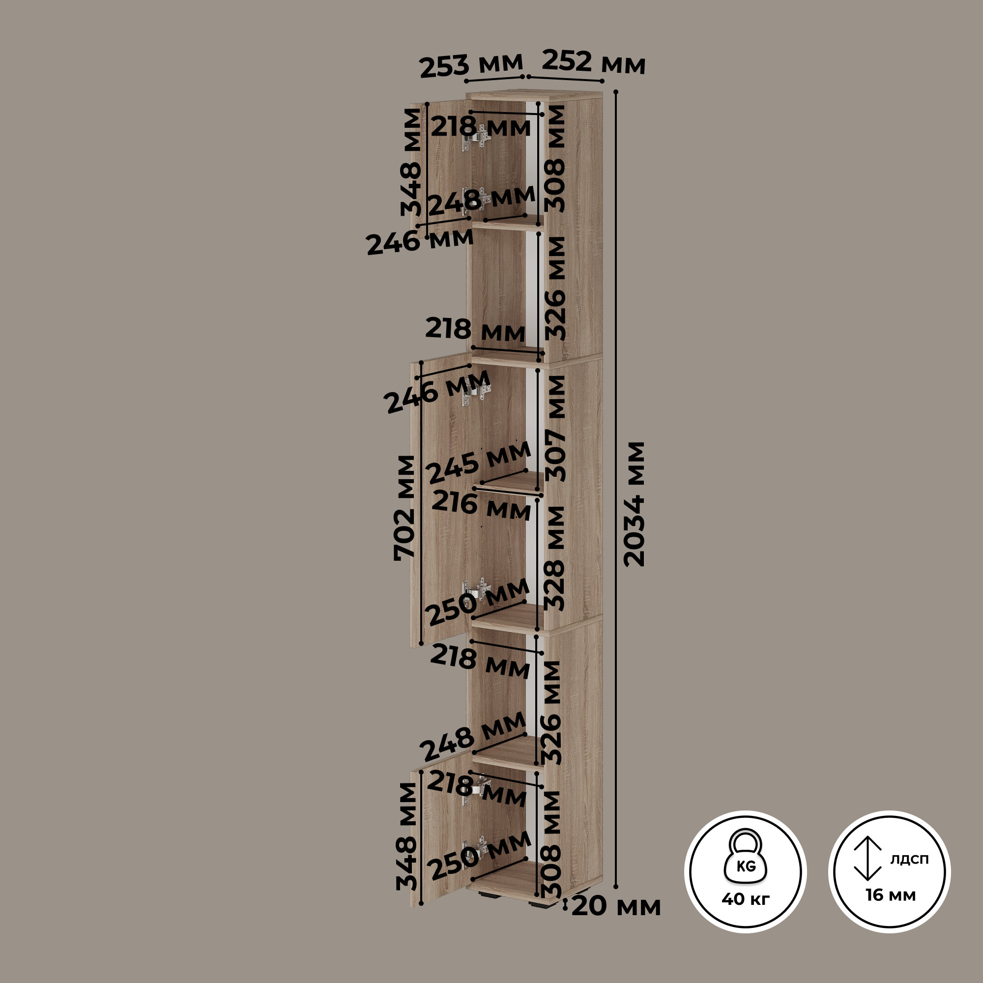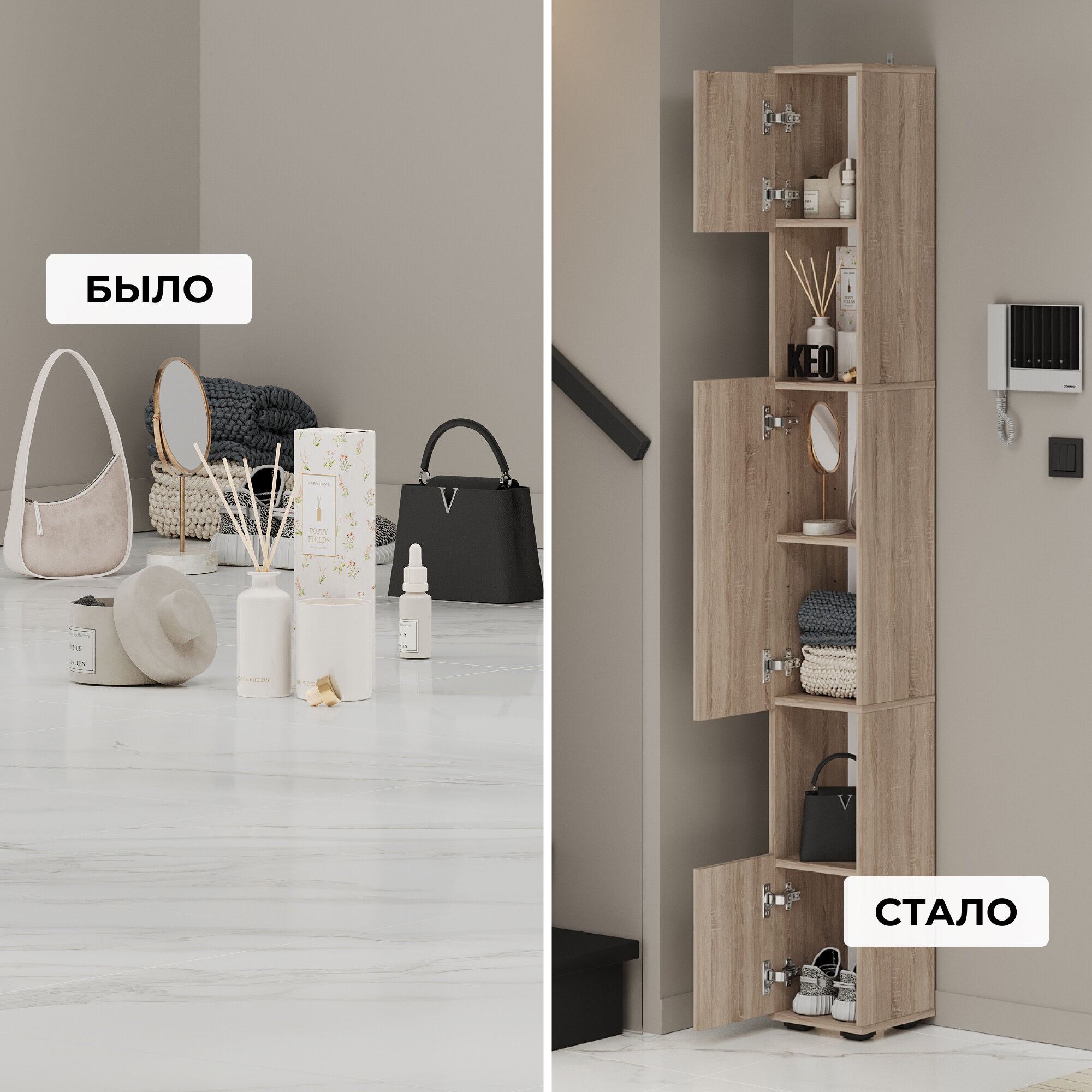 СохранитьШкаф пенал узкий высокий напольный Кео ПНП-411 сонома в прихожую ванную на балкон для кухни 2039х269х252 мм интересное: