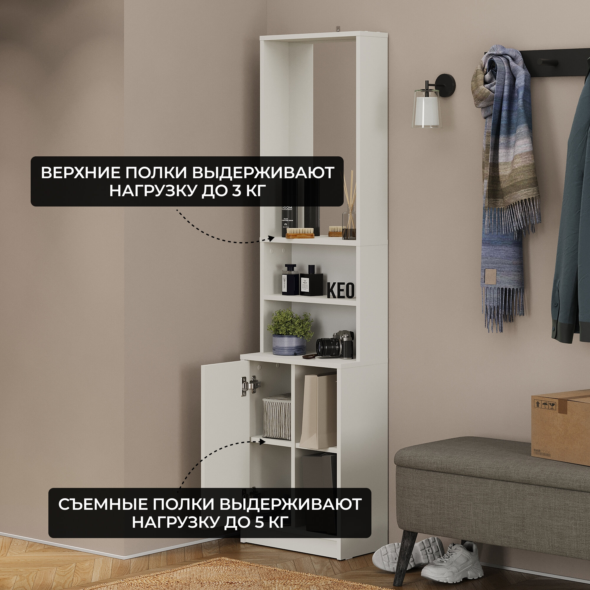 Шкаф Локер "Push to Move" Левый, 81х52.5х220, Мебельная компания Е1, Белый снег