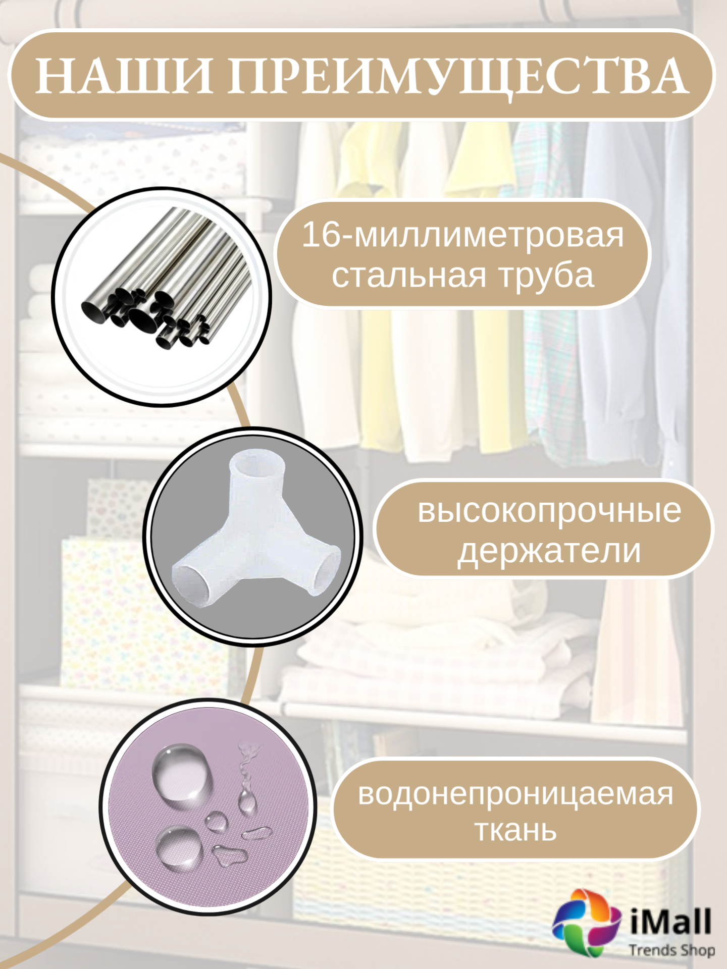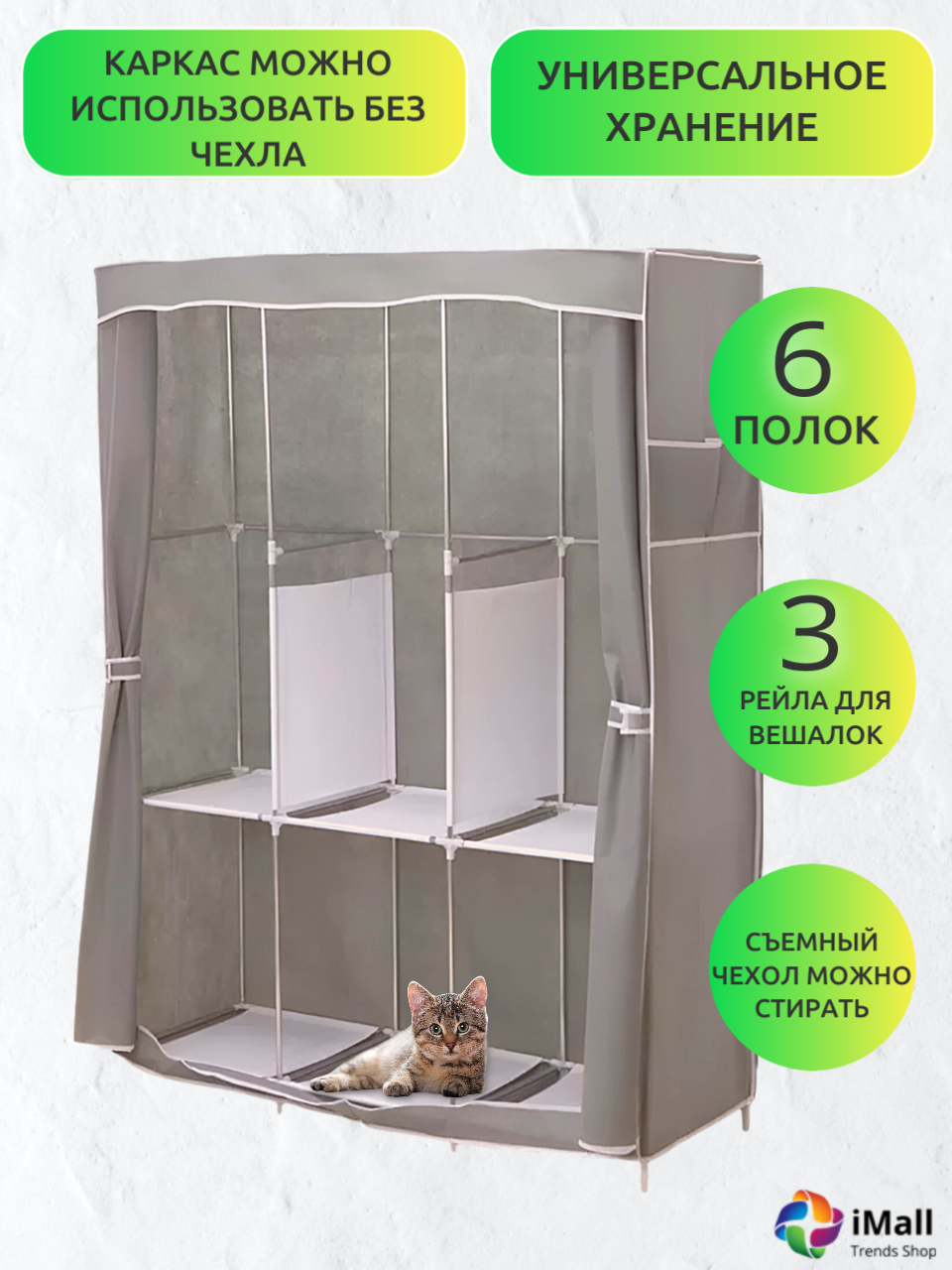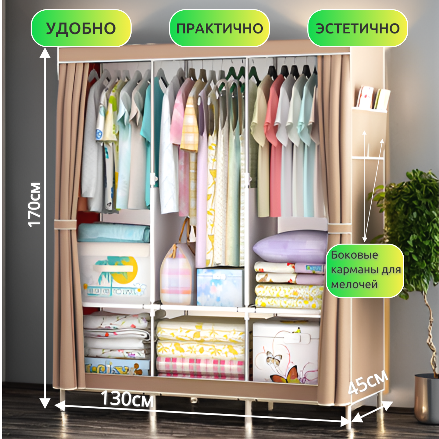 Шкаф тканевый для хранения одежды и вещей с полками и штангой интересное: