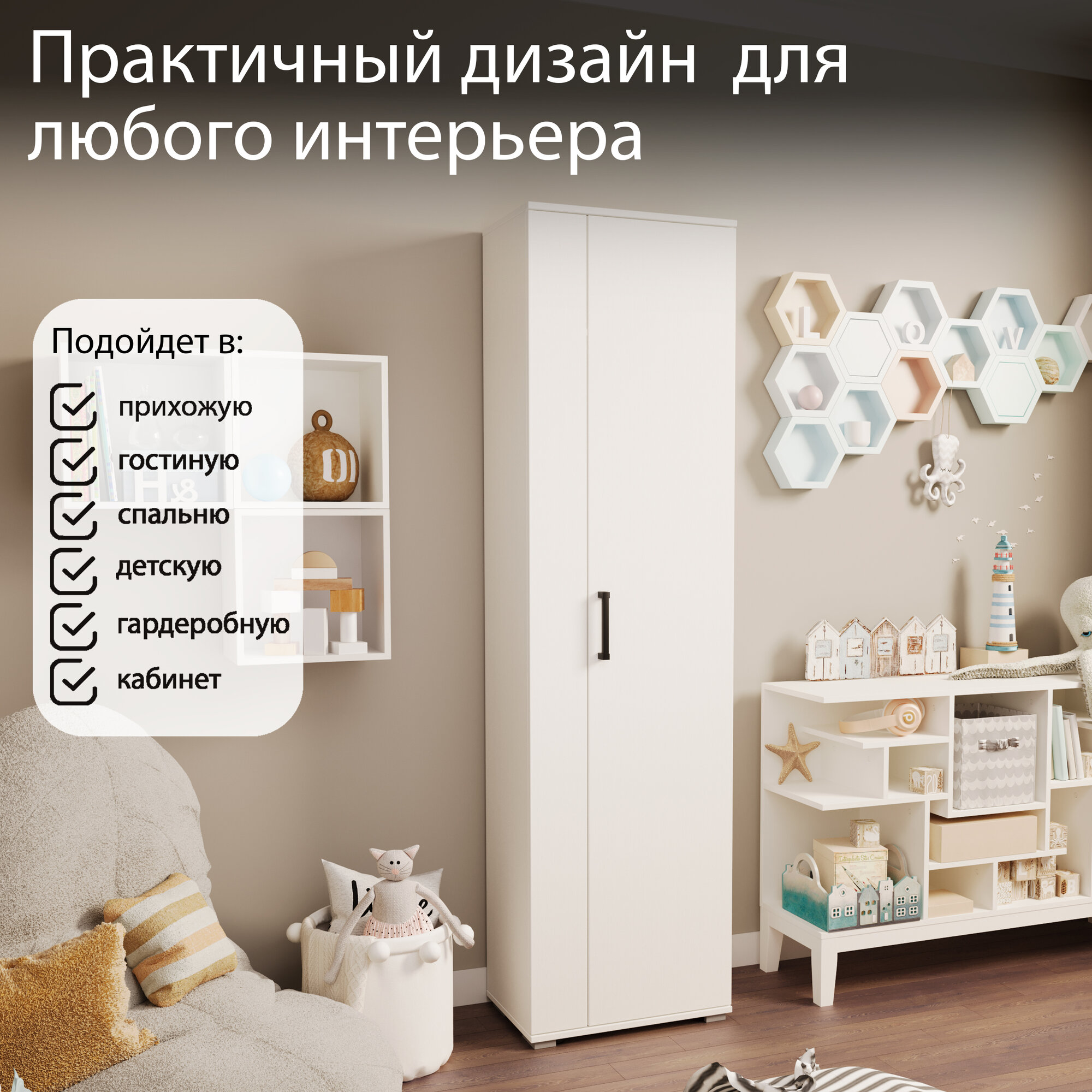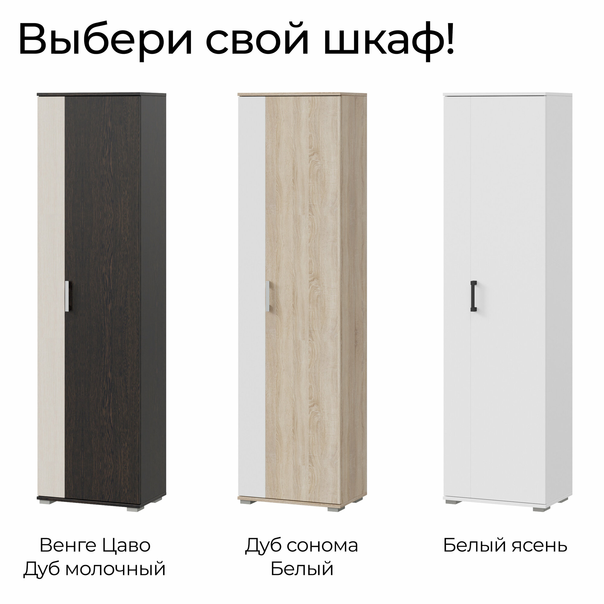 Шкаф для одежды узкий распашной белый ясень (ВхШхГ) 200х54х35 см, Эрика интересное: