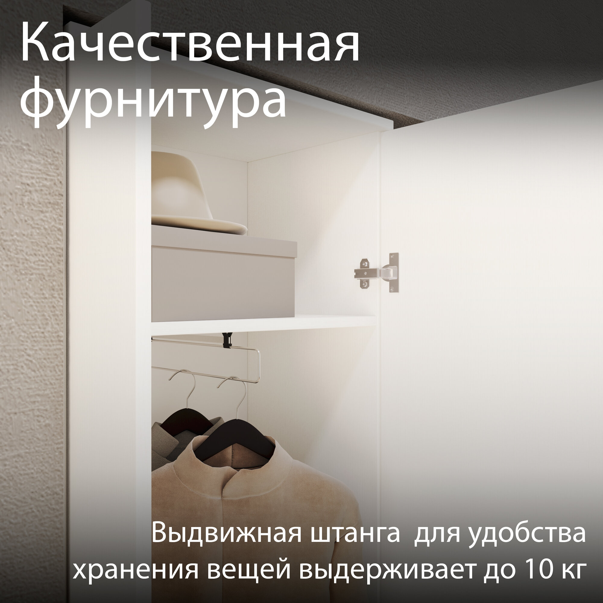 Шкаф для одежды распашной Нонтон Луас, 120 см, 7 полок и штанга, белый глянец