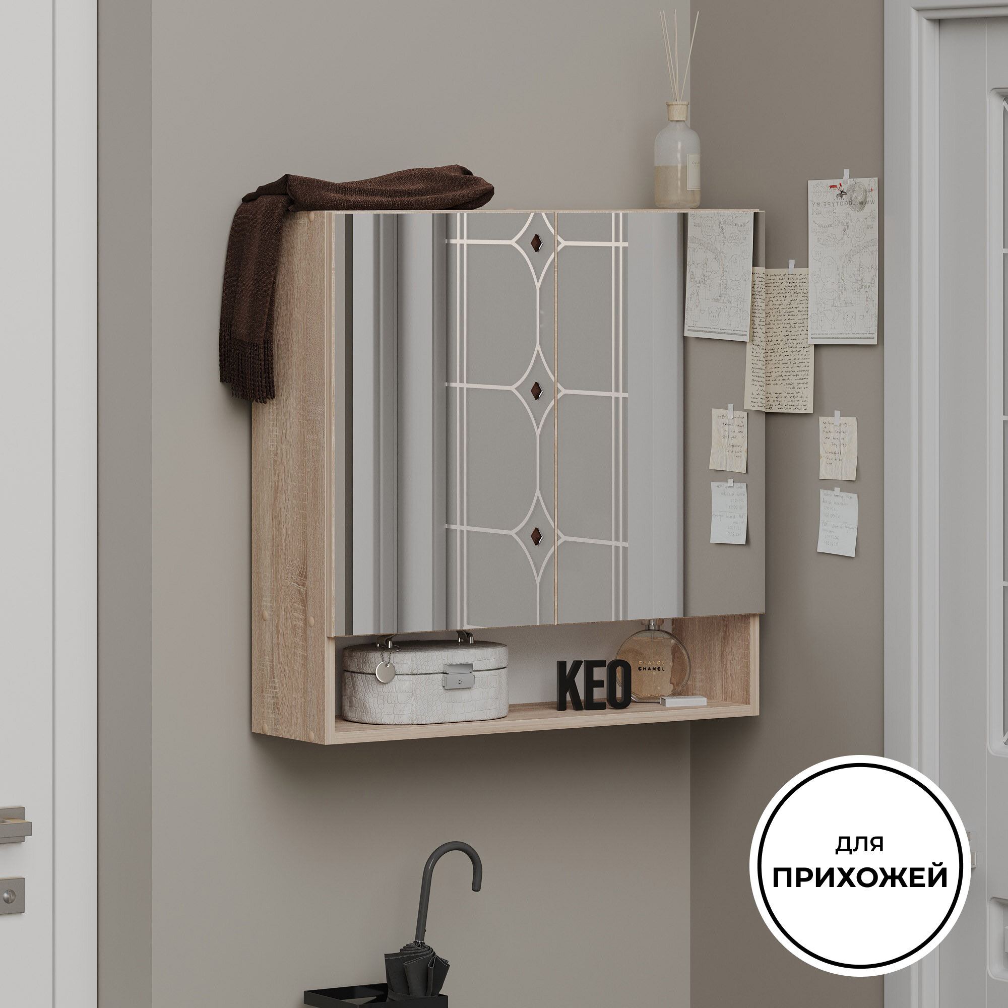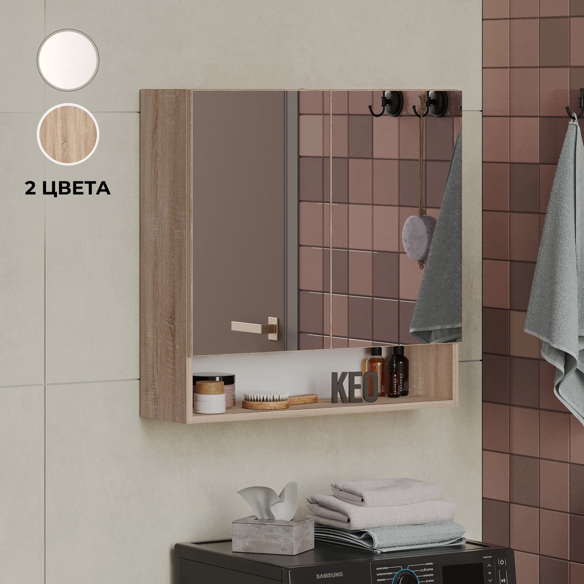 Купить Шкаф навесной распашной Кео ШКН-230 дуб сонома с зеркалами полками для вещей в ванную прихожую 740х225х740 мм