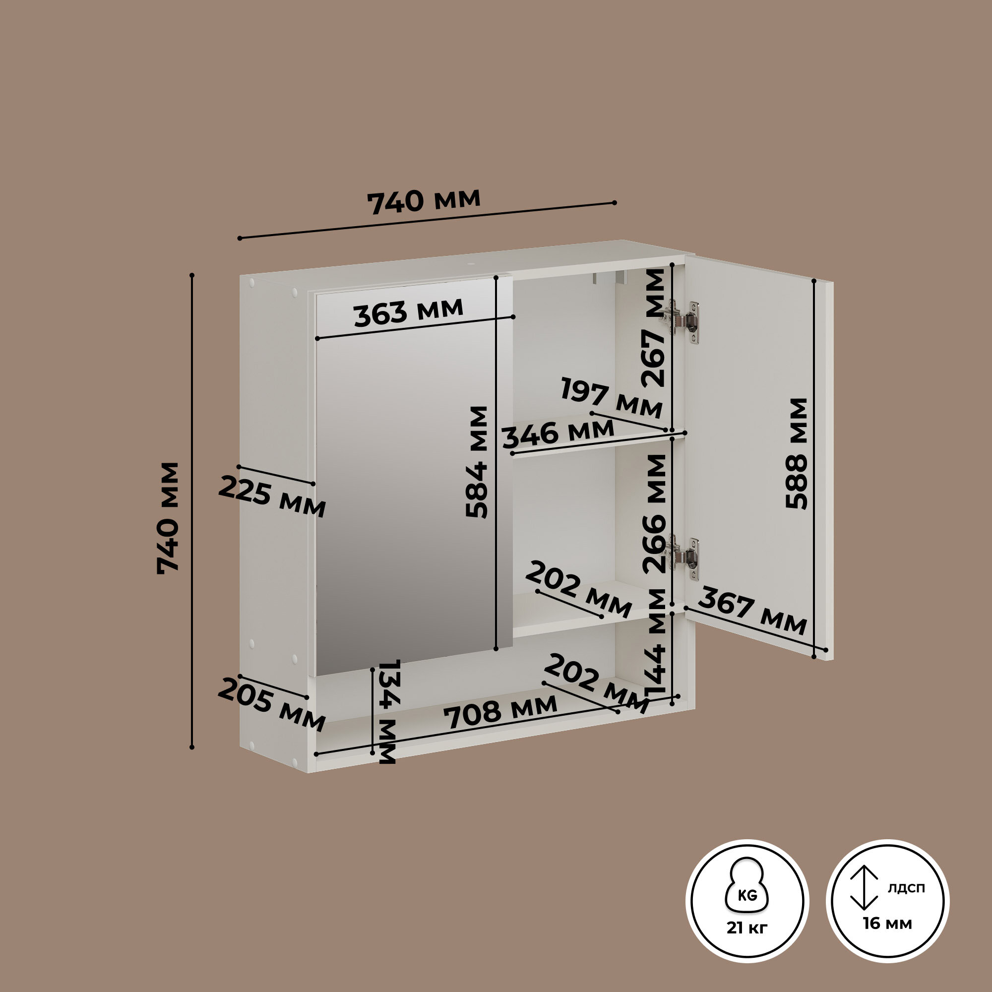 СохранитьШкаф навесной распашной Кео ШКН-230 белый с зеркалами полками для вещей в ванную прихожую 740х225х740 мм интересное: