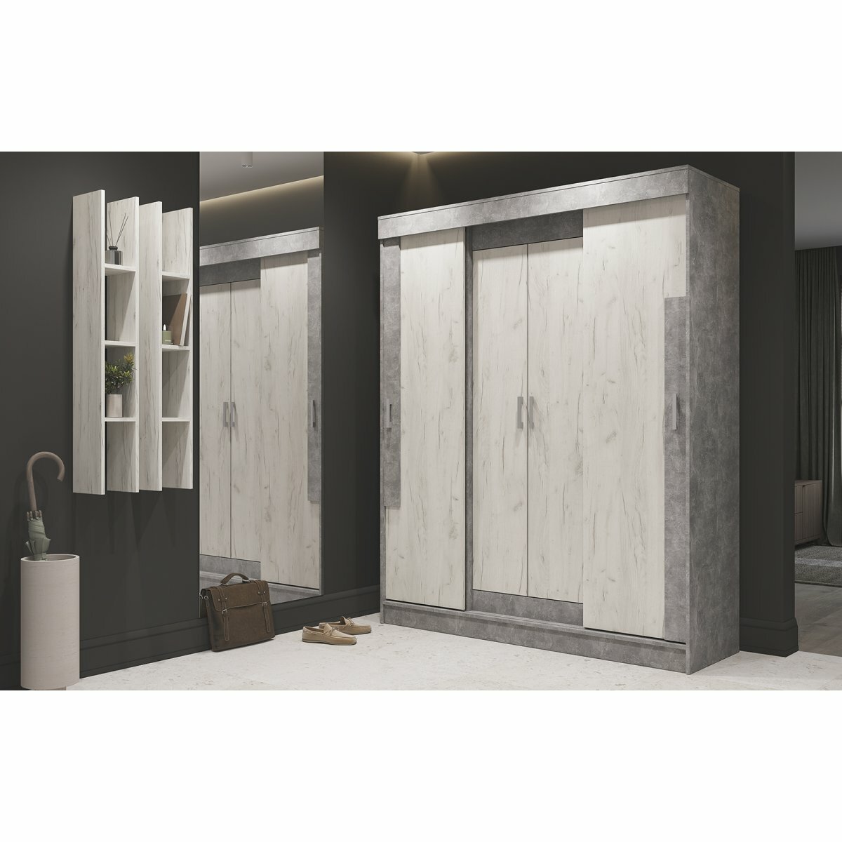 Шкаф-купе Гамма ШК 01 Дуб крафт белый/Ателье светлый интересное: