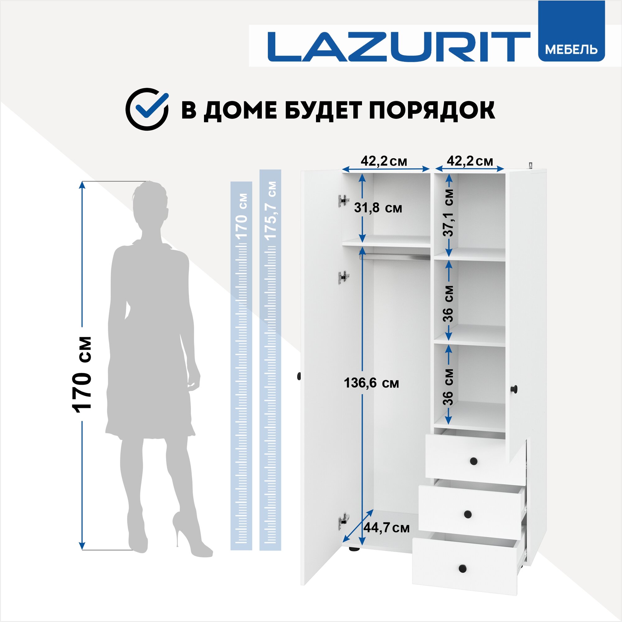 Шкаф для одежды распашной Lazurit Эльбрус деревянный в спальню белый интересное: