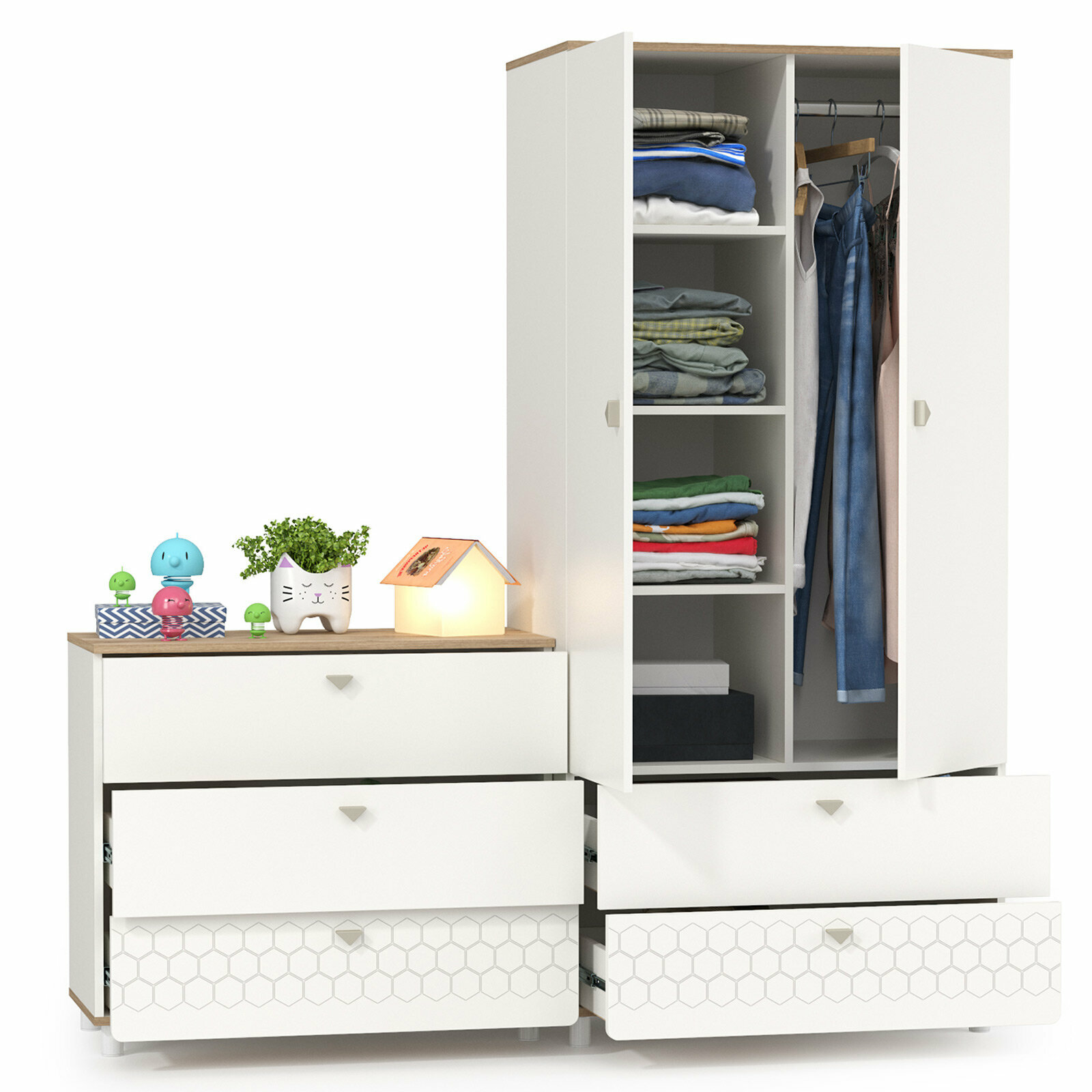 Шкаф для одежды с комодом для детской Эйп, цвет белый/дуб белый, ШхГхВ 170х51,1х183,8 см., универсальная сборка интересное: