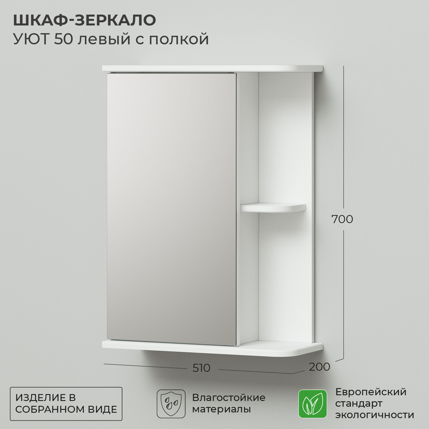 Купить Шкаф зеркало IKA Уют 50 510х200х700 левый с полкой