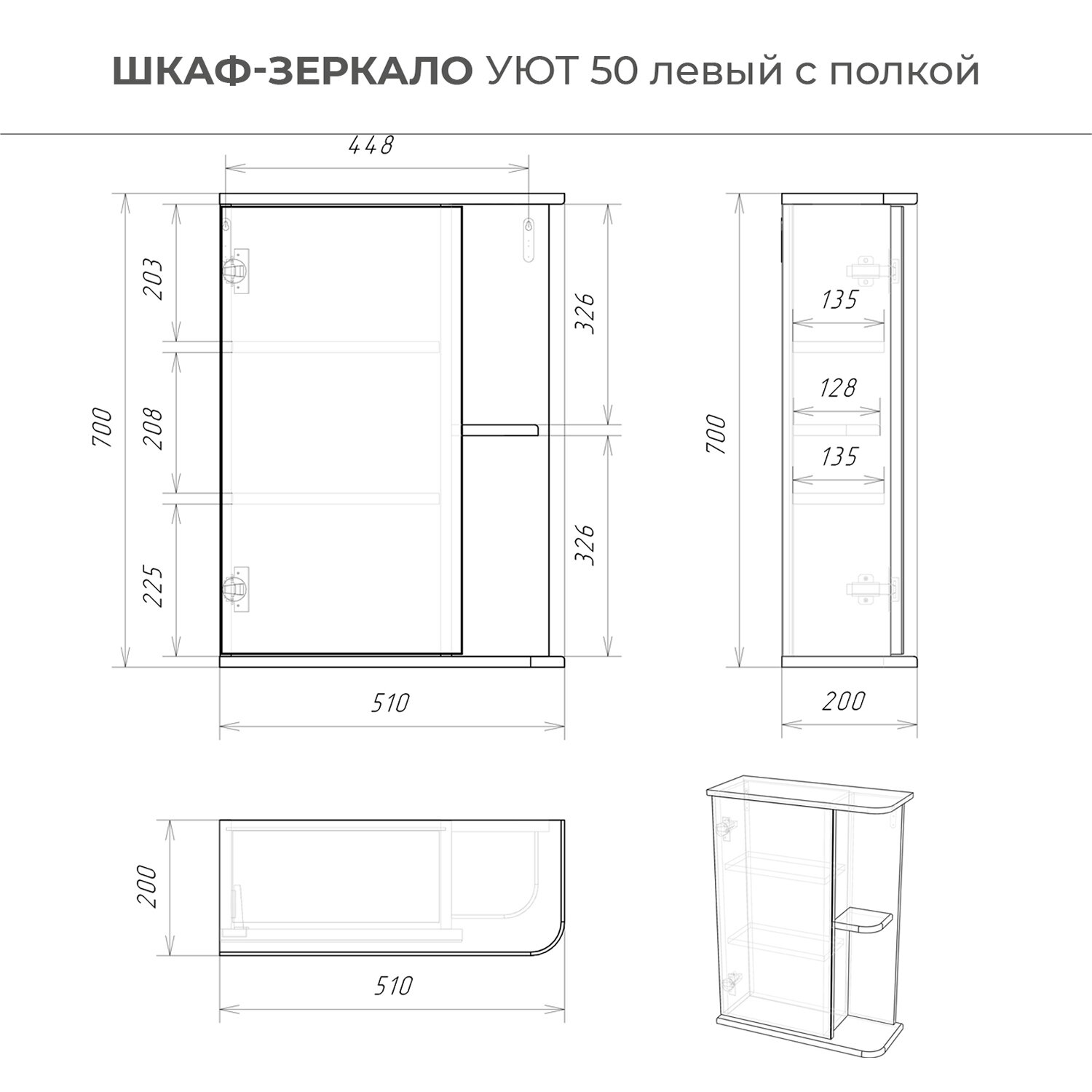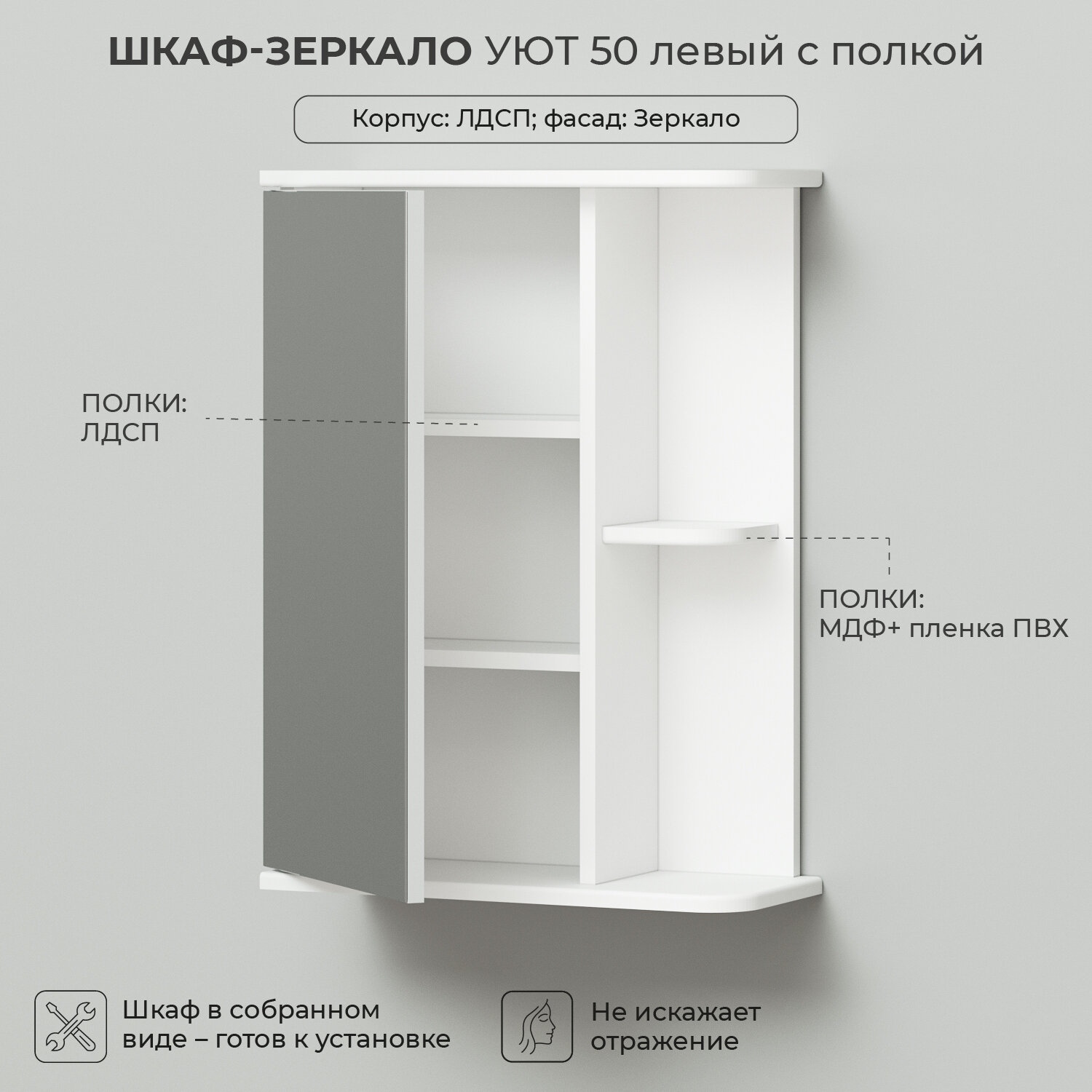 Шкаф зеркало IKA Уют 50 510х200х700 левый с полкой интересное:
